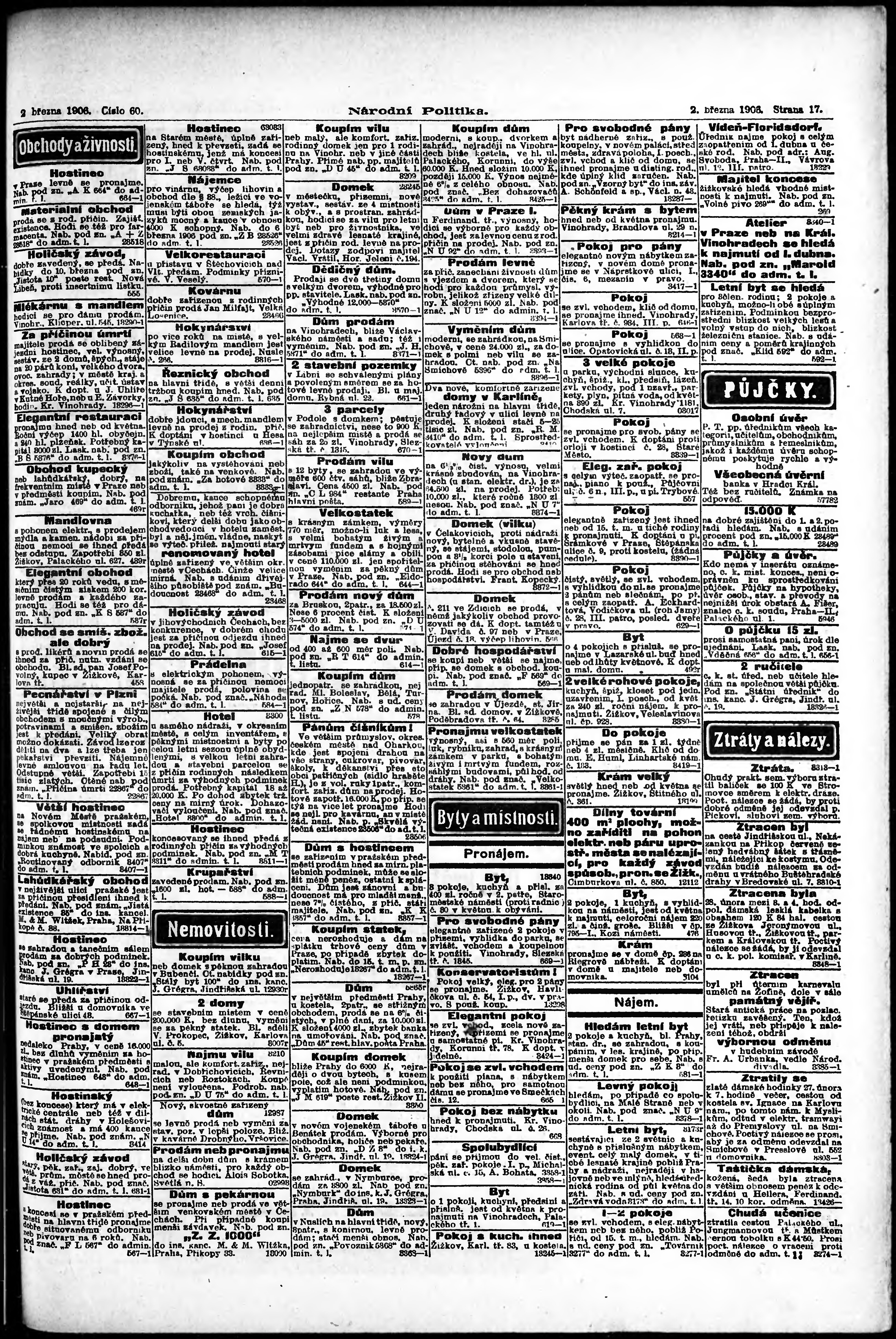 * Datum vydání výtisku: 2.3.1906 Číslo výtisku: 60 Poznámky k výtisku: ranní vydání;