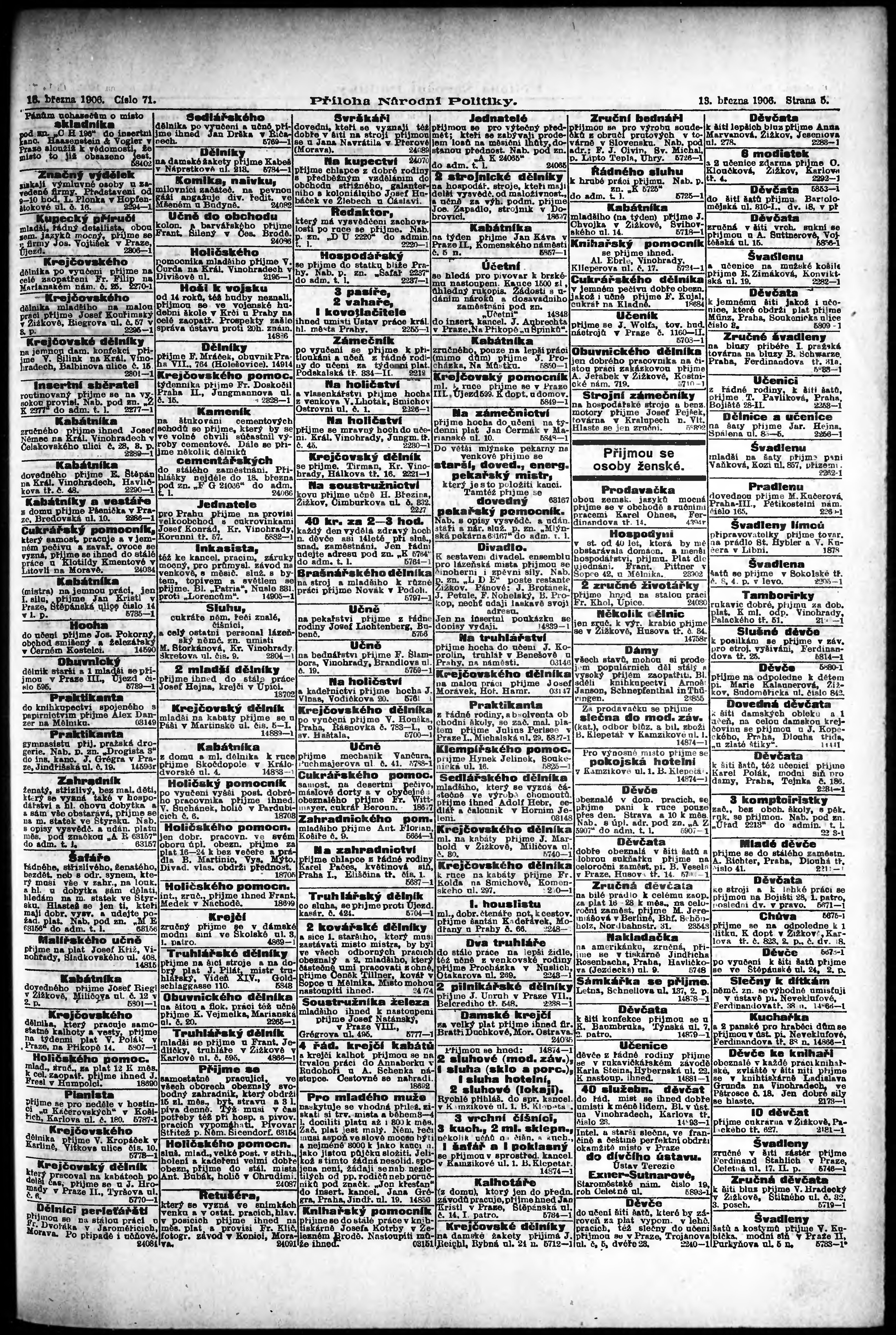 * Datum vydání výtisku: 13.3.1906 Číslo výtisku: 71 Typ výtisku: příloha