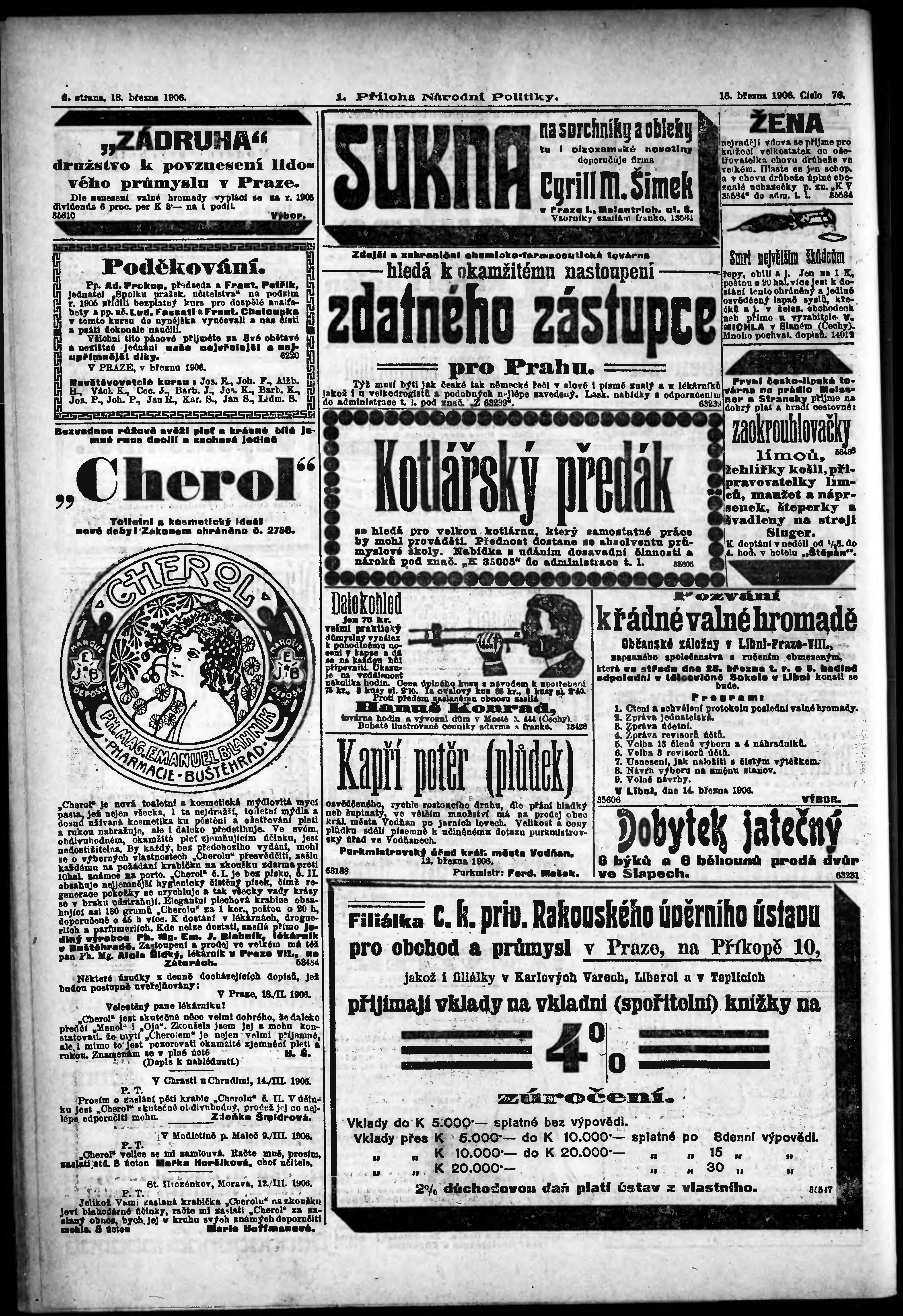 * Datum vydání výtisku: 18.3.1906 Číslo výtisku: 76 Typ výtisku: příloha Poznámky k výtisku: 1. příloha;