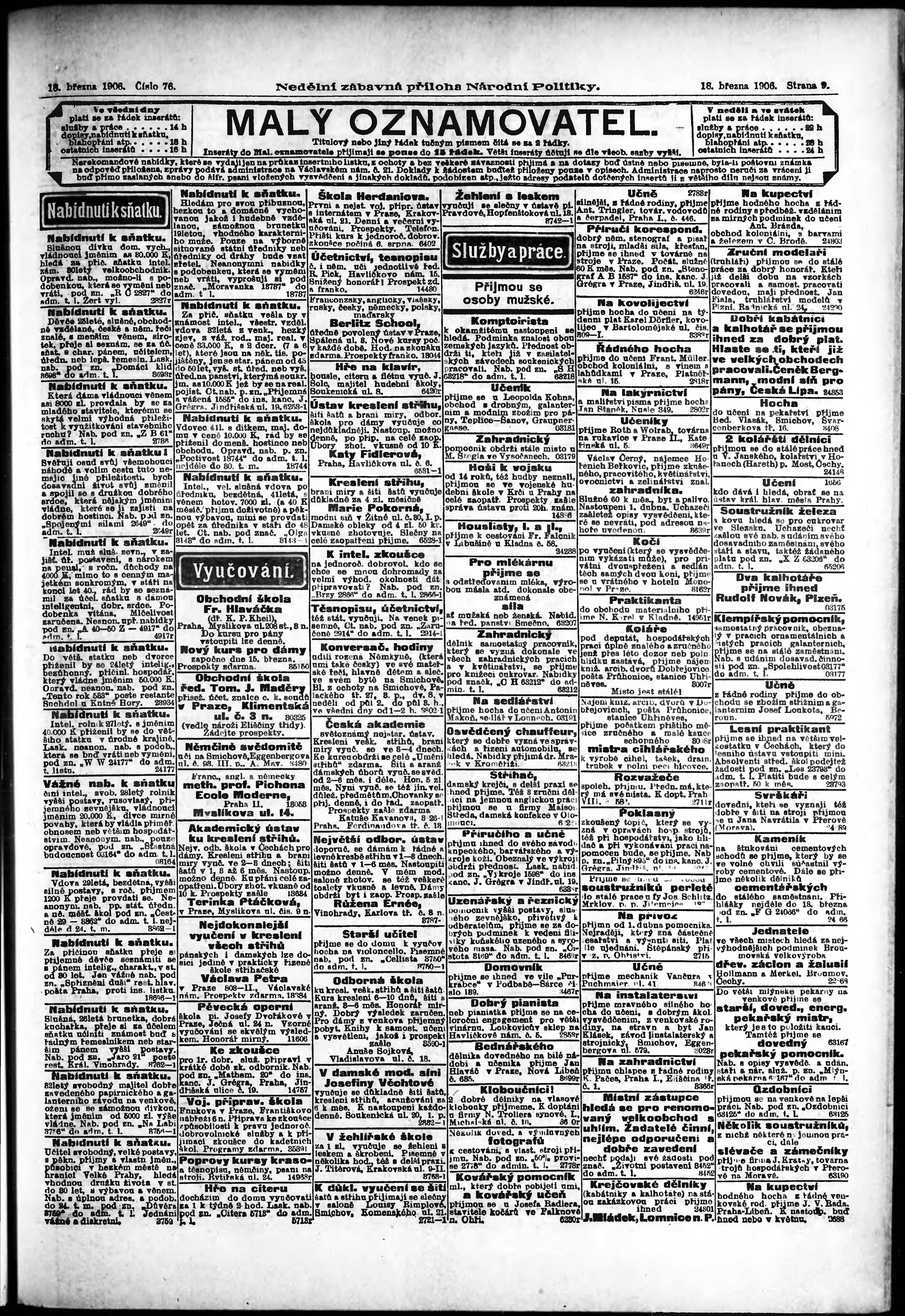 * Datum vydání výtisku: 18.3.1906 Číslo výtisku: 76 Typ výtisku: příloha