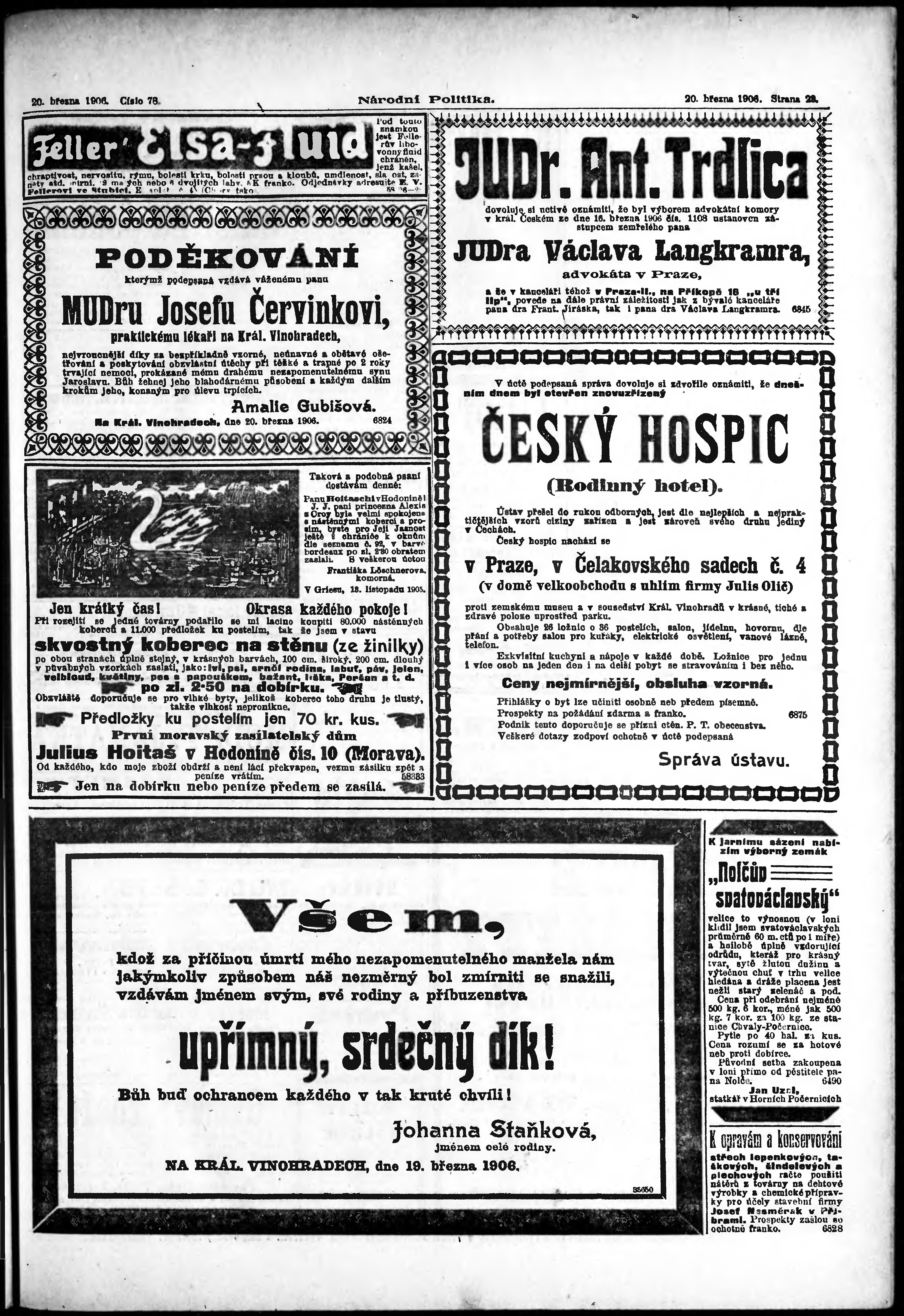 * Datum vydání výtisku: 20.3.1906 Číslo výtisku: 78 Poznámky k výtisku: ranní vydání;