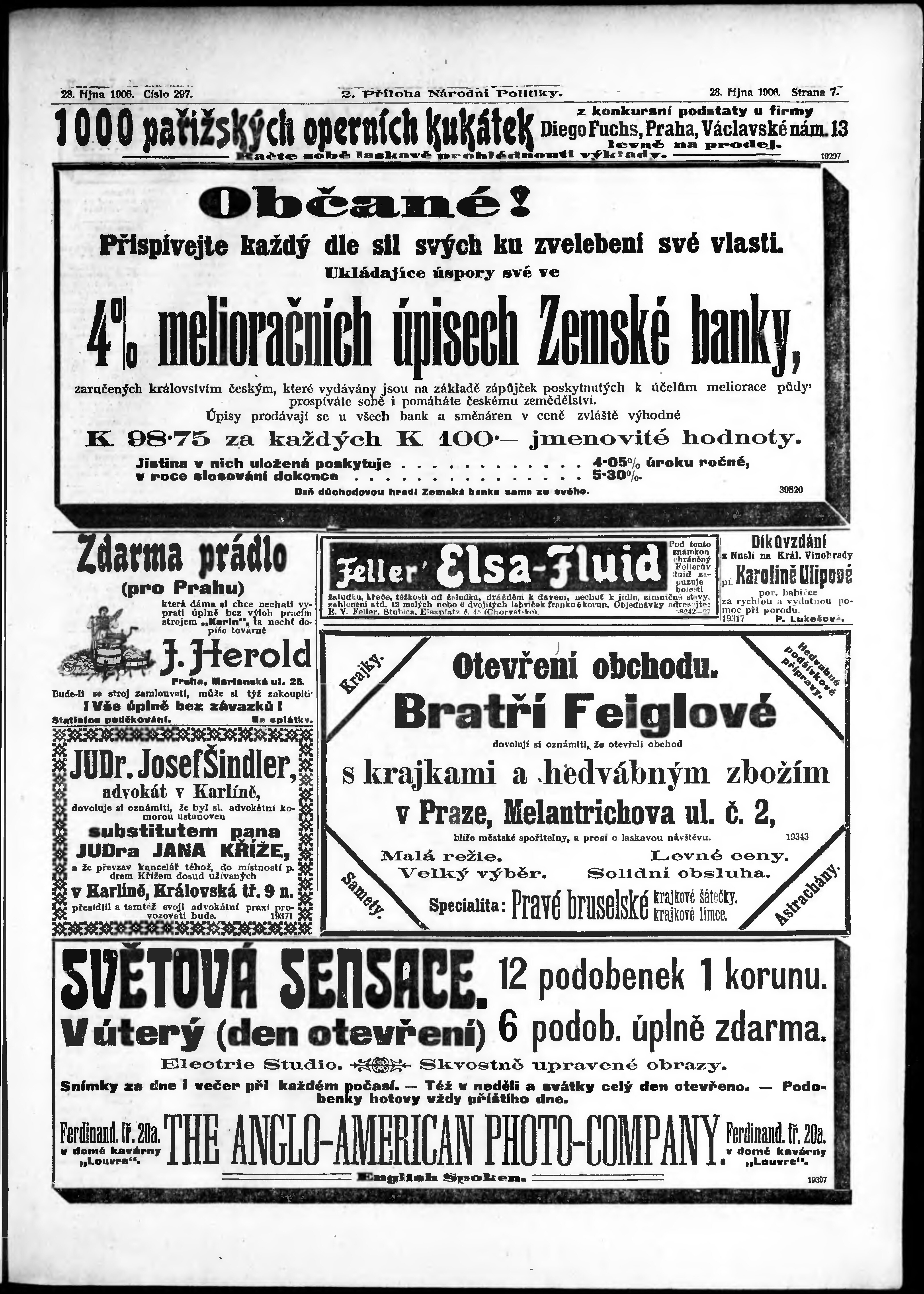 * Datum vydání výtisku: 28.10.1906 Číslo výtisku: 297 Typ výtisku: příloha Poznámky k výtisku: 2. příloha;