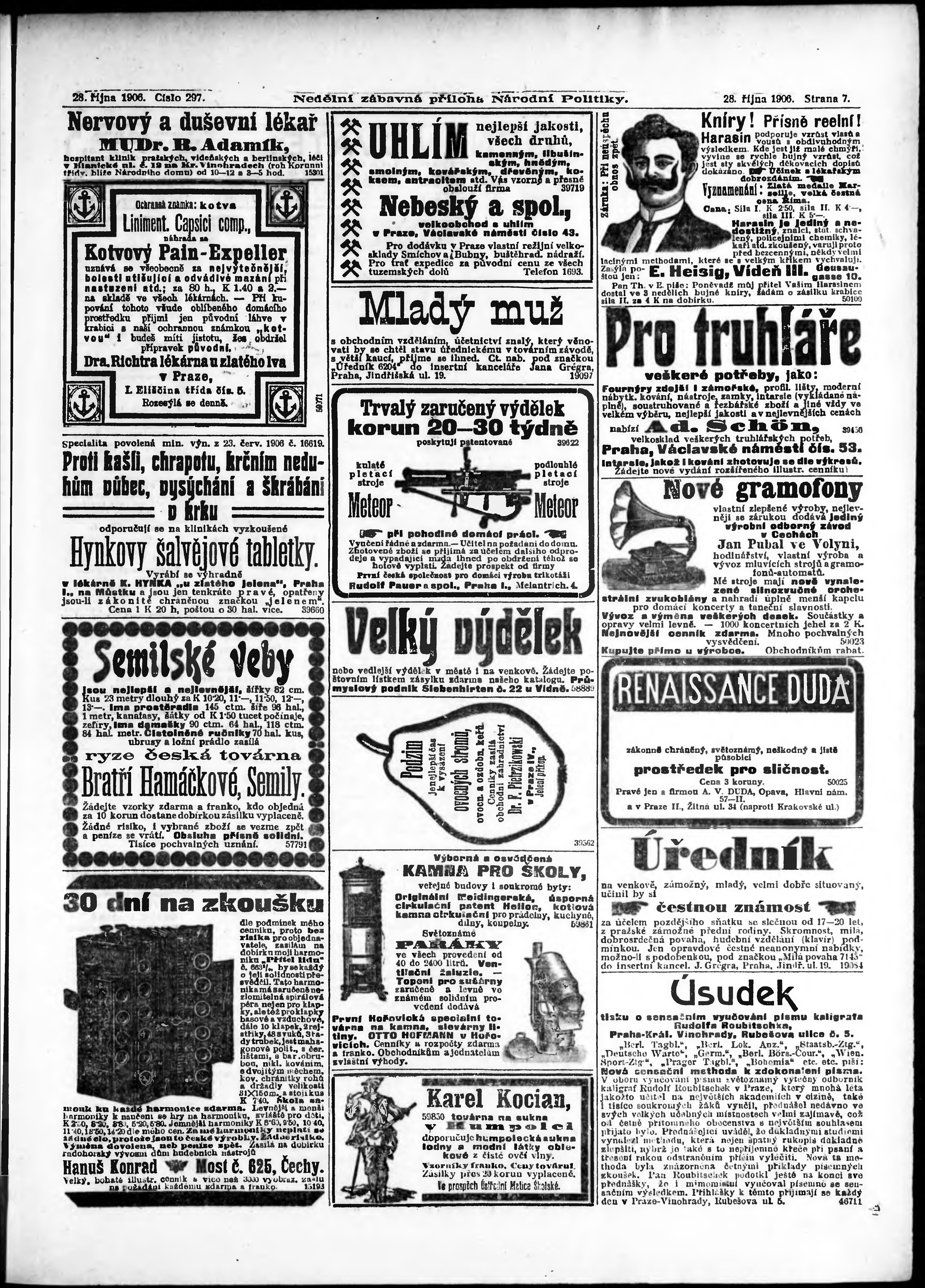 * Datum vydání výtisku: 28.10.1906 Číslo výtisku: 297 Typ výtisku: příloha