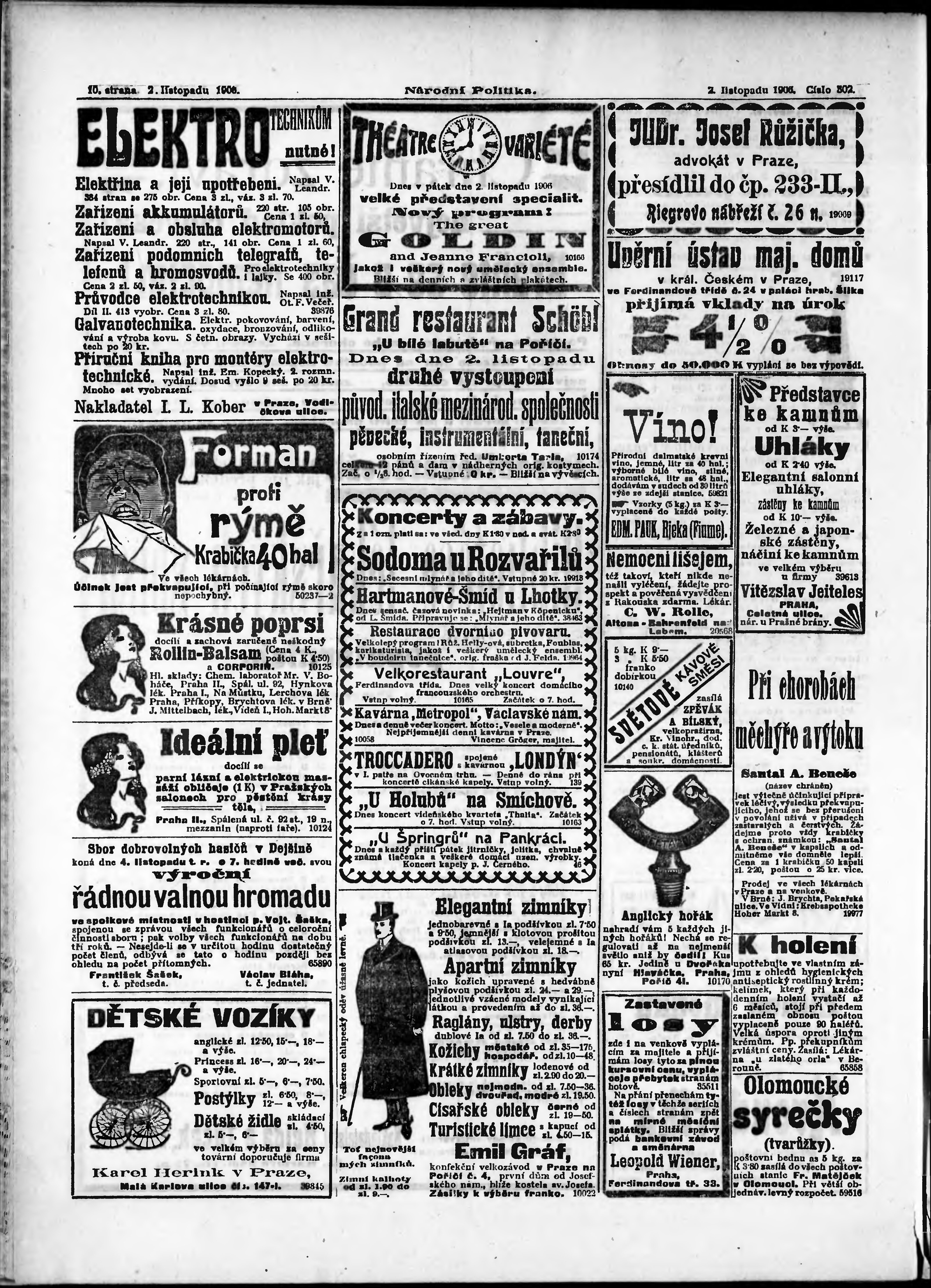 * Datum vydání výtisku: 2.11.1906 Číslo výtisku: 302 Poznámky k výtisku: ranní vydání;