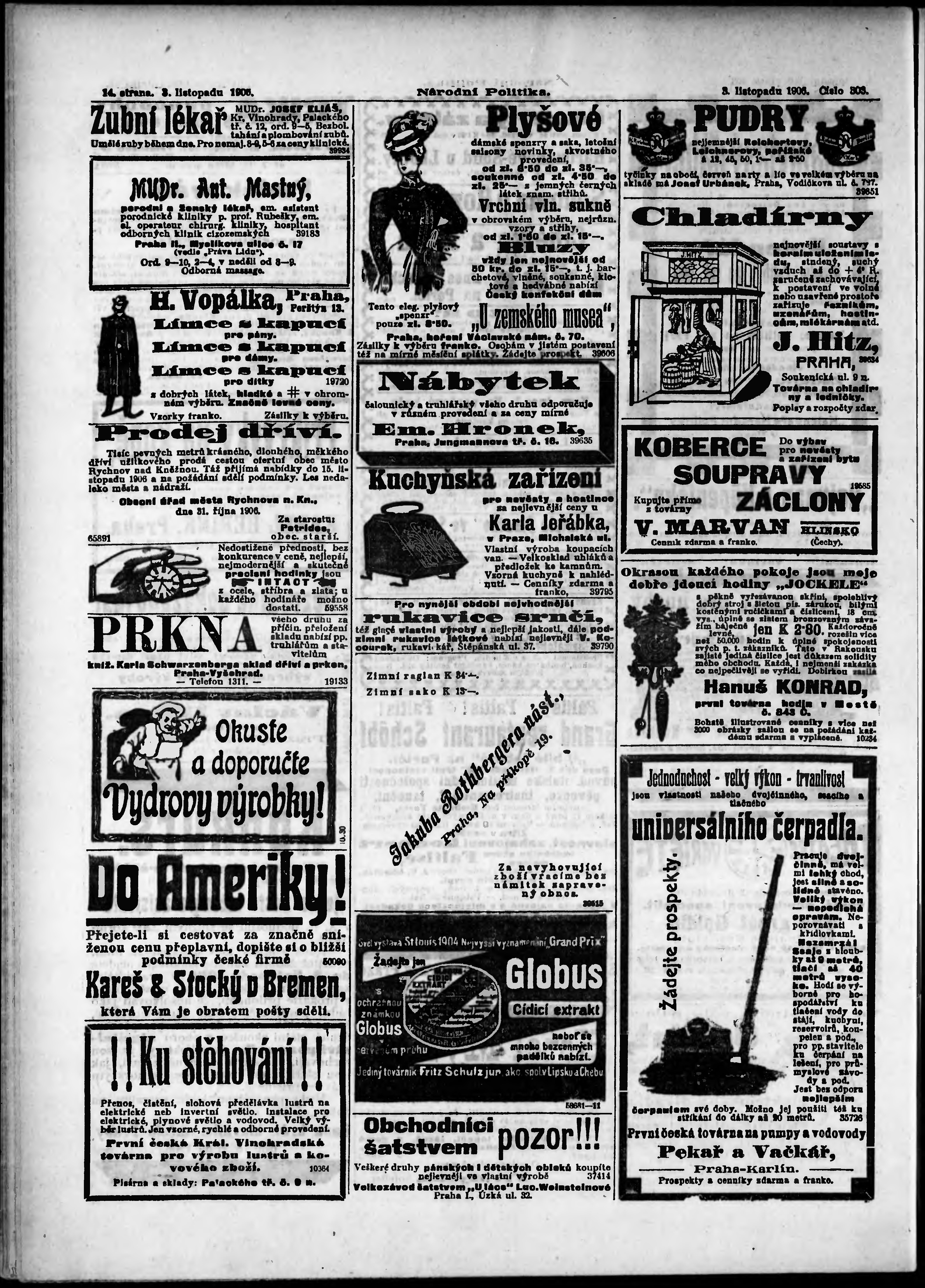 * Datum vydání výtisku: 3.11.1906 Číslo výtisku: 303 Poznámky k výtisku: ranní vydání;