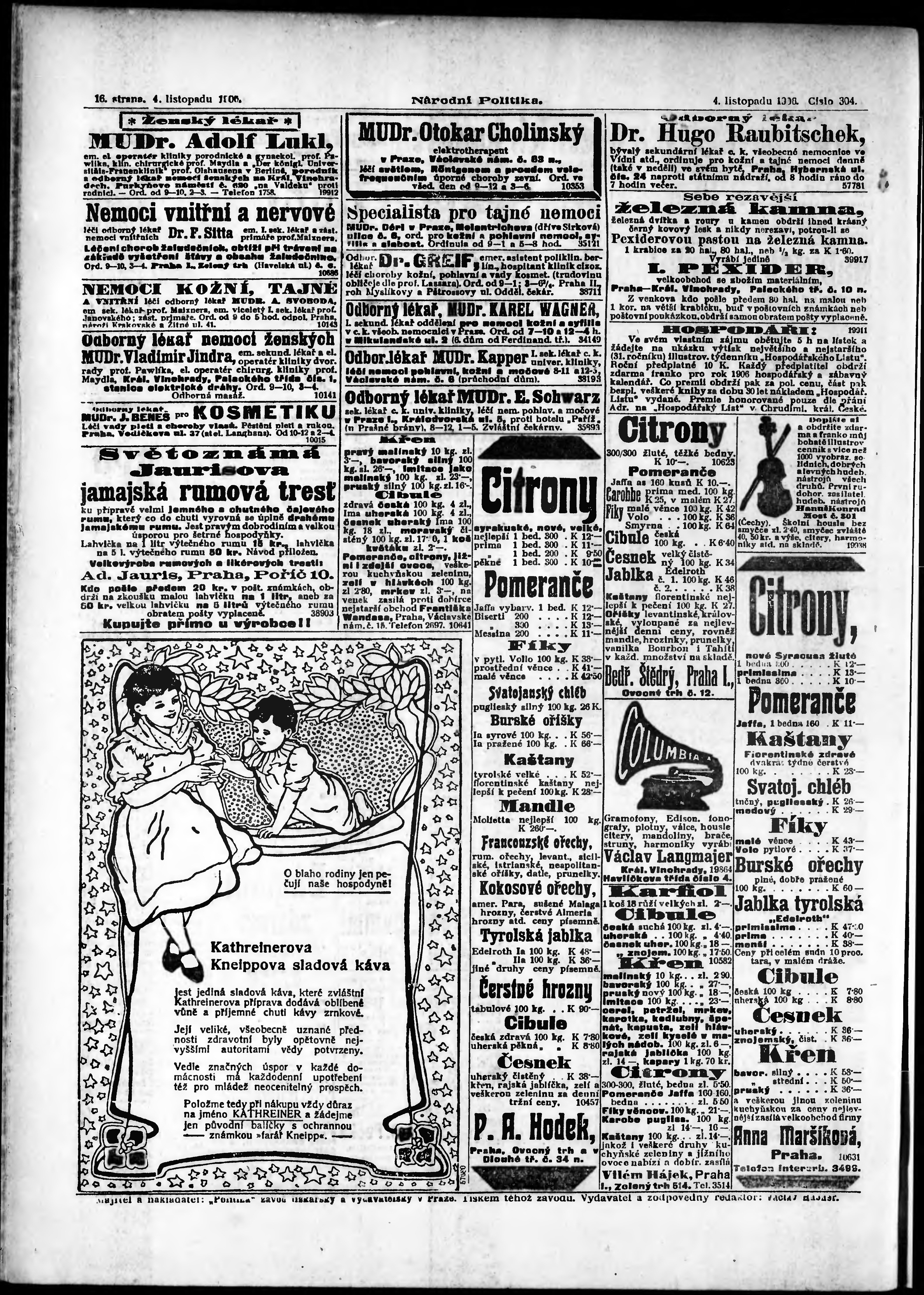* Datum vydání výtisku: 4.11.1906 Číslo výtisku: 304 Poznámky k výtisku: ranní vydání;