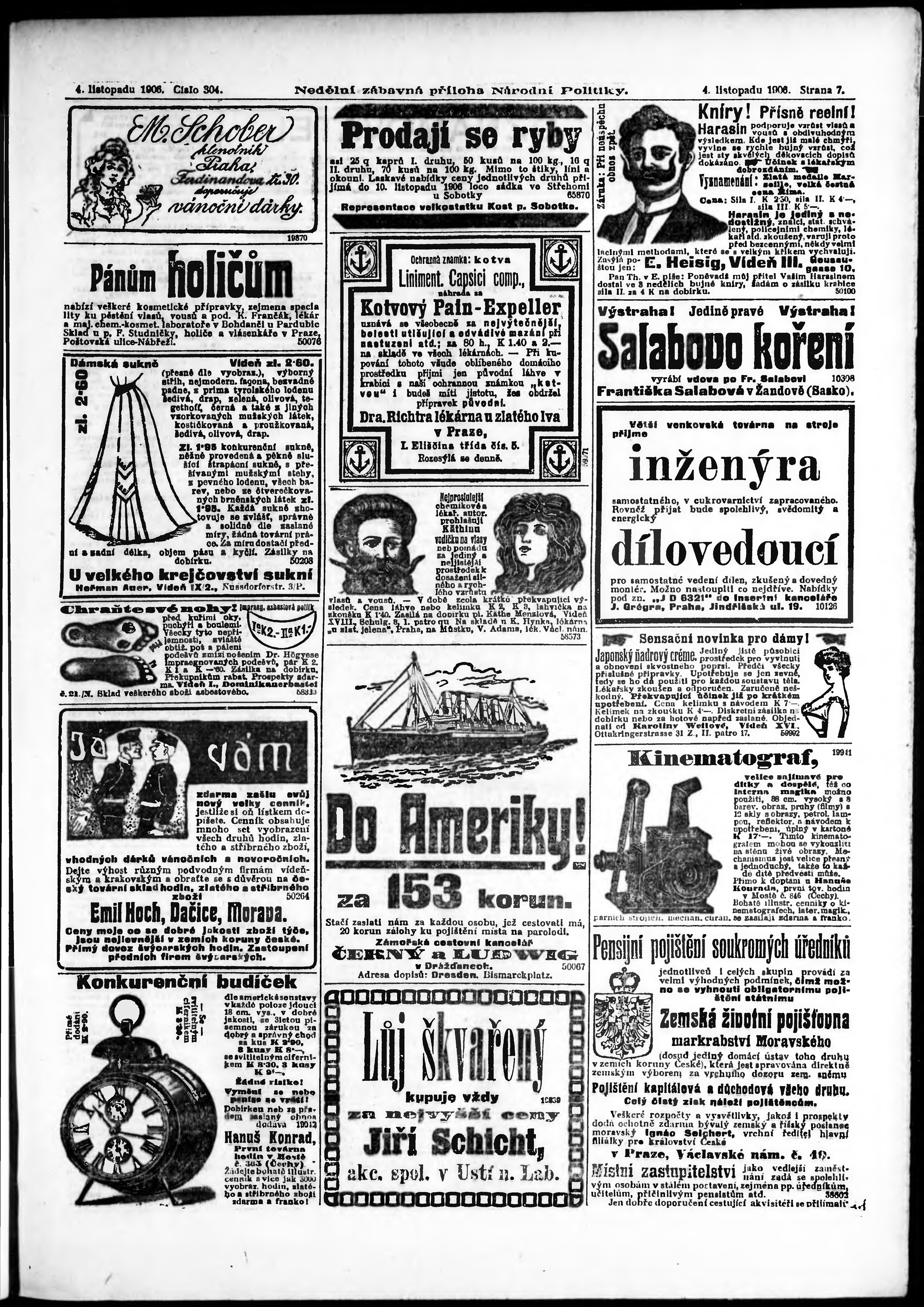 * Datum vydání výtisku: 4.11.1906 Číslo výtisku: 304 Typ výtisku: příloha
