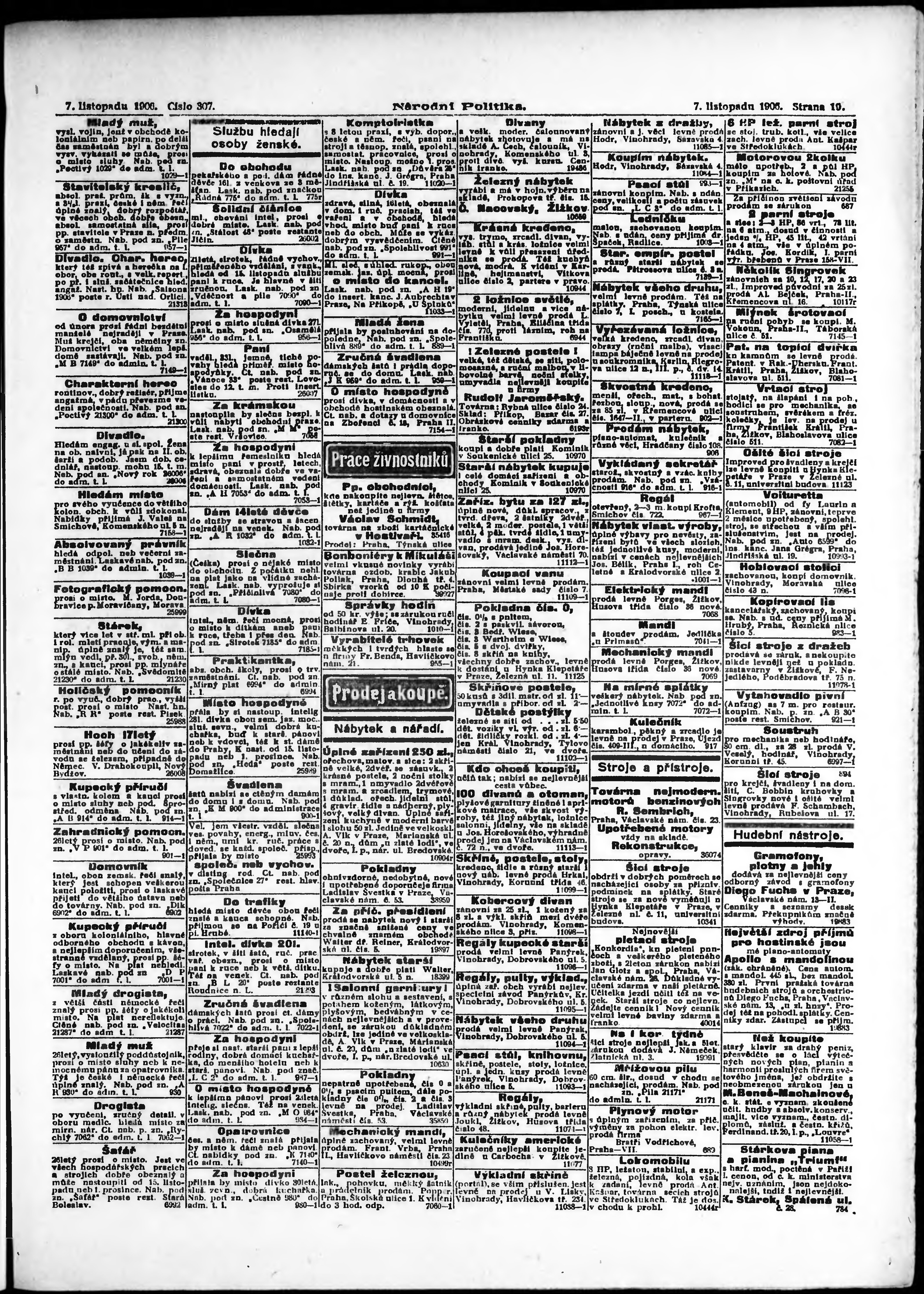 * Datum vydání výtisku: 7.11.1906 Číslo výtisku: 307 Poznámky k výtisku: ranní vydání;