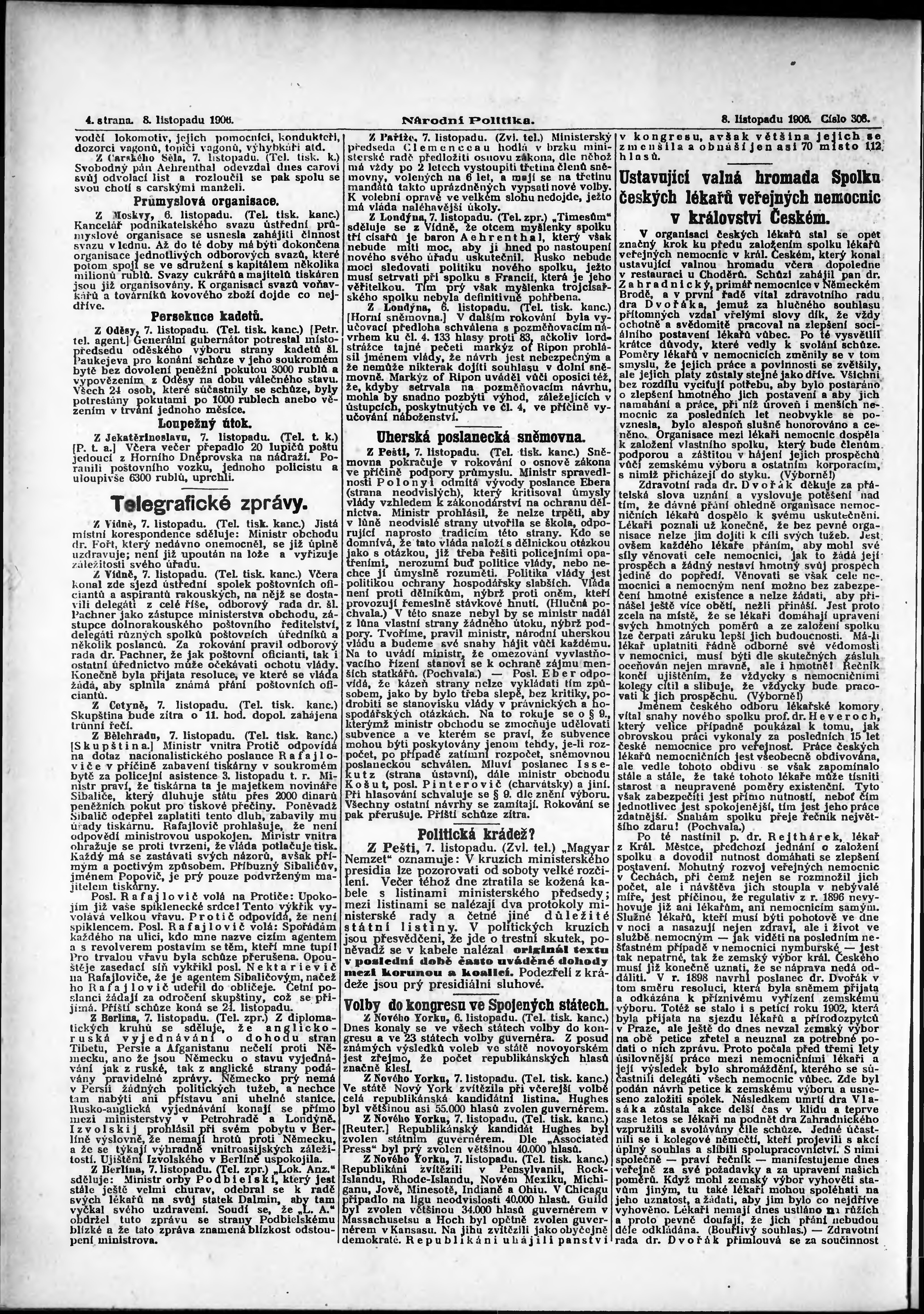 * Datum vydání výtisku: 8.11.1906 Číslo výtisku: 308 Poznámky k výtisku: ranní vydání;