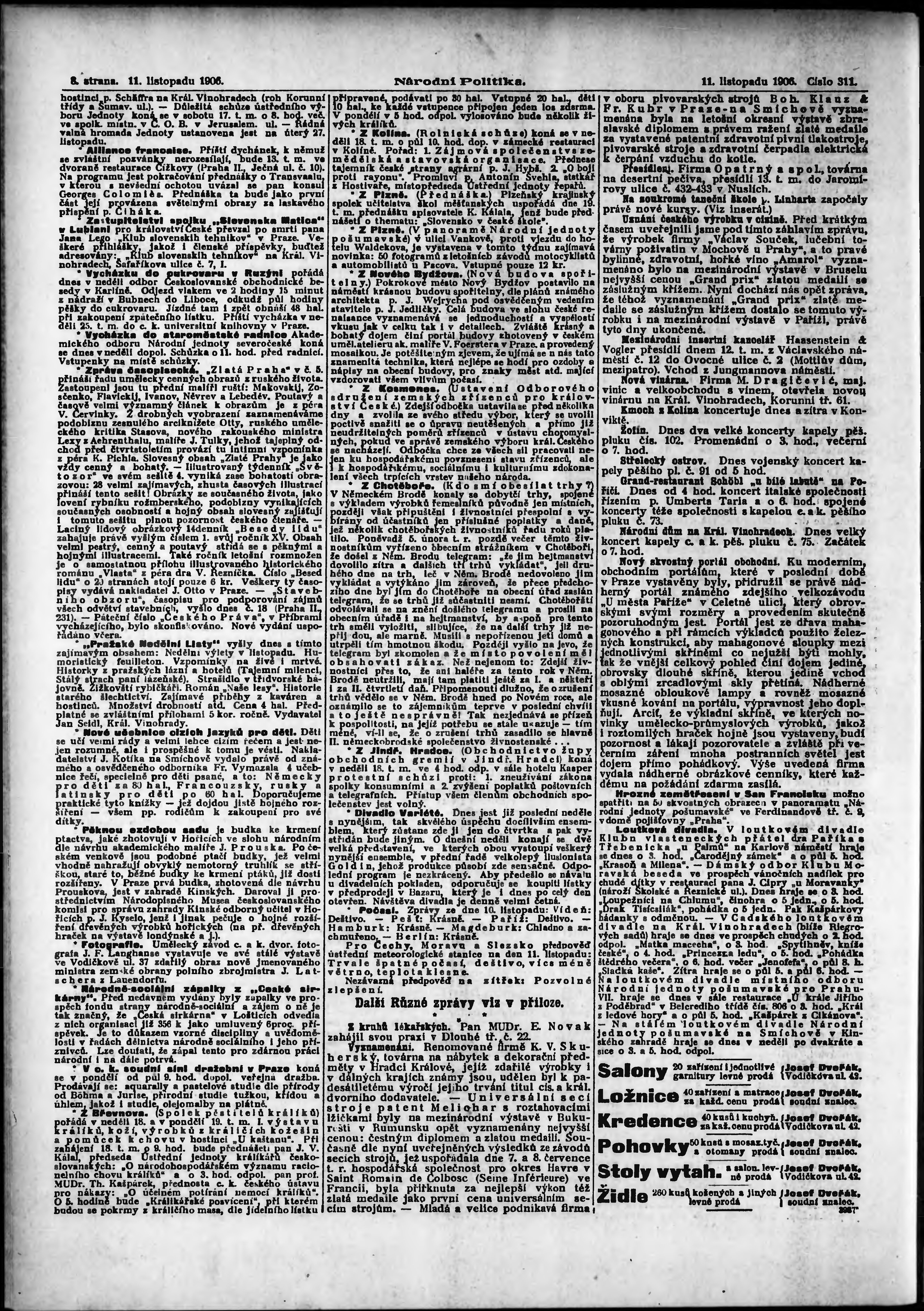 * Datum vydání výtisku: 11.11.1906 Číslo výtisku: 311 Poznámky k výtisku: ranní vydání;