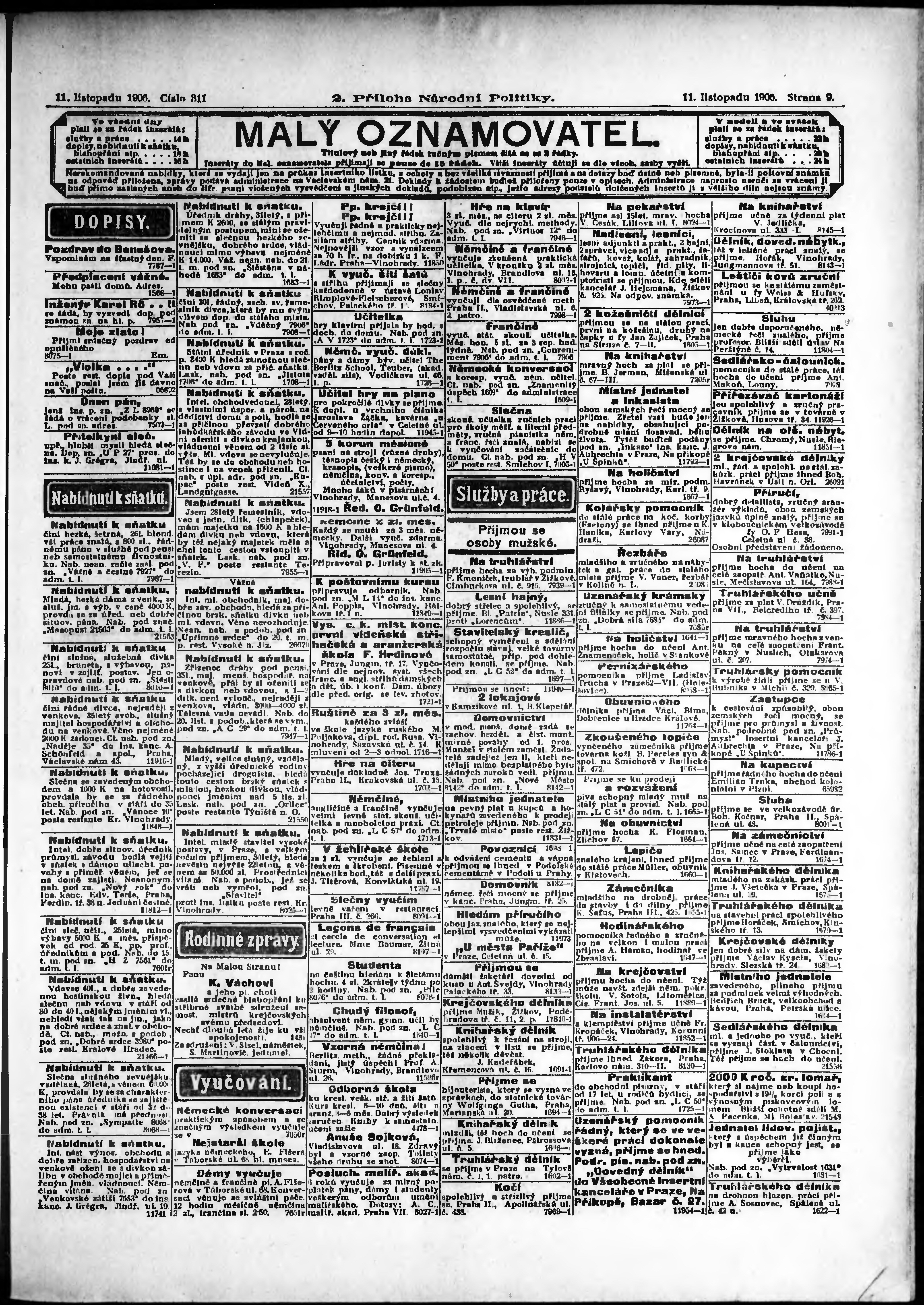 * Datum vydání výtisku: 11.11.1906 Číslo výtisku: 311 Typ výtisku: příloha Poznámky k výtisku: 2. příloha;