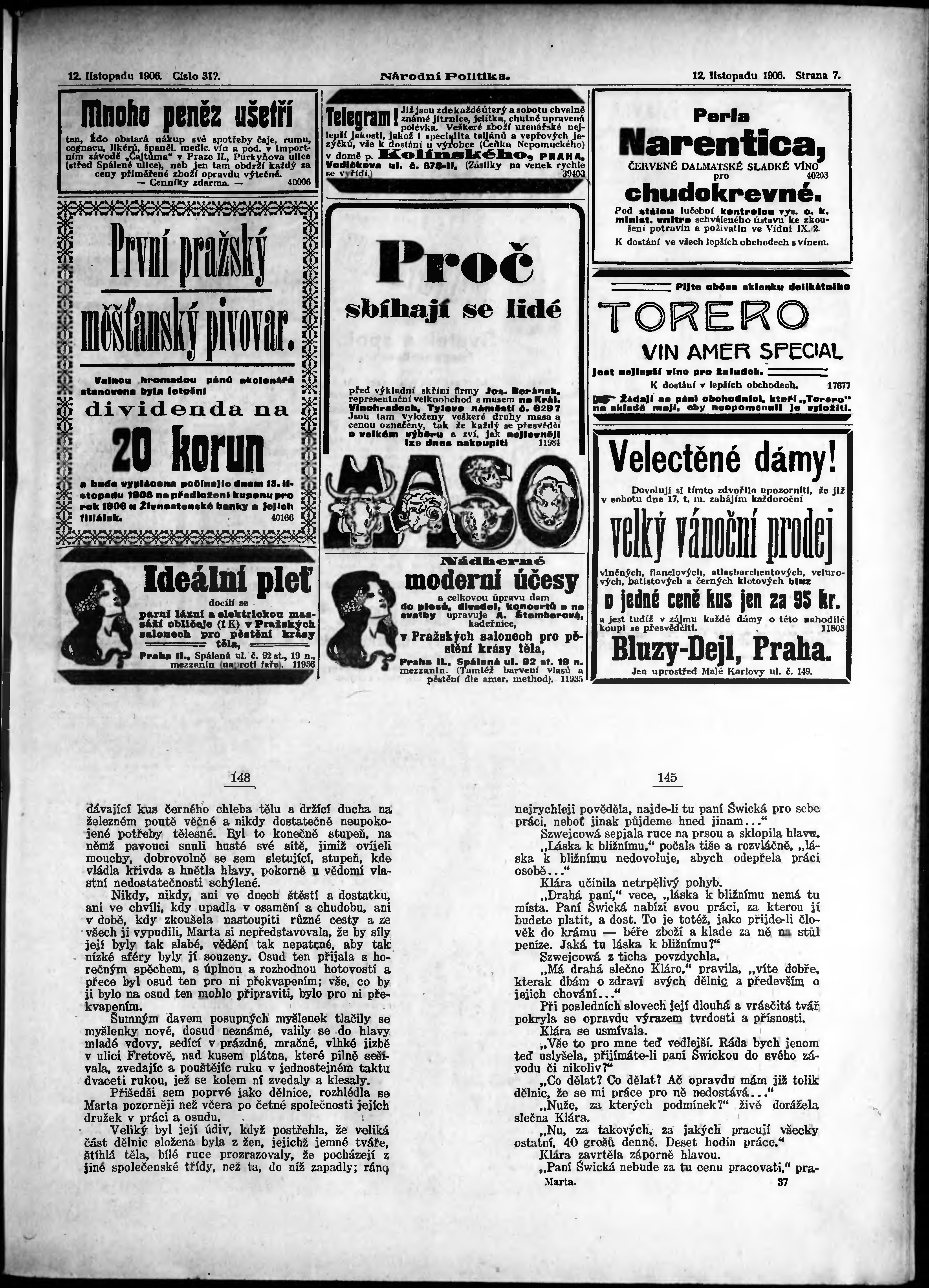 * Datum vydání výtisku: 12.11.1906 Číslo výtisku: 312 Poznámky k výtisku: ranní vydání;