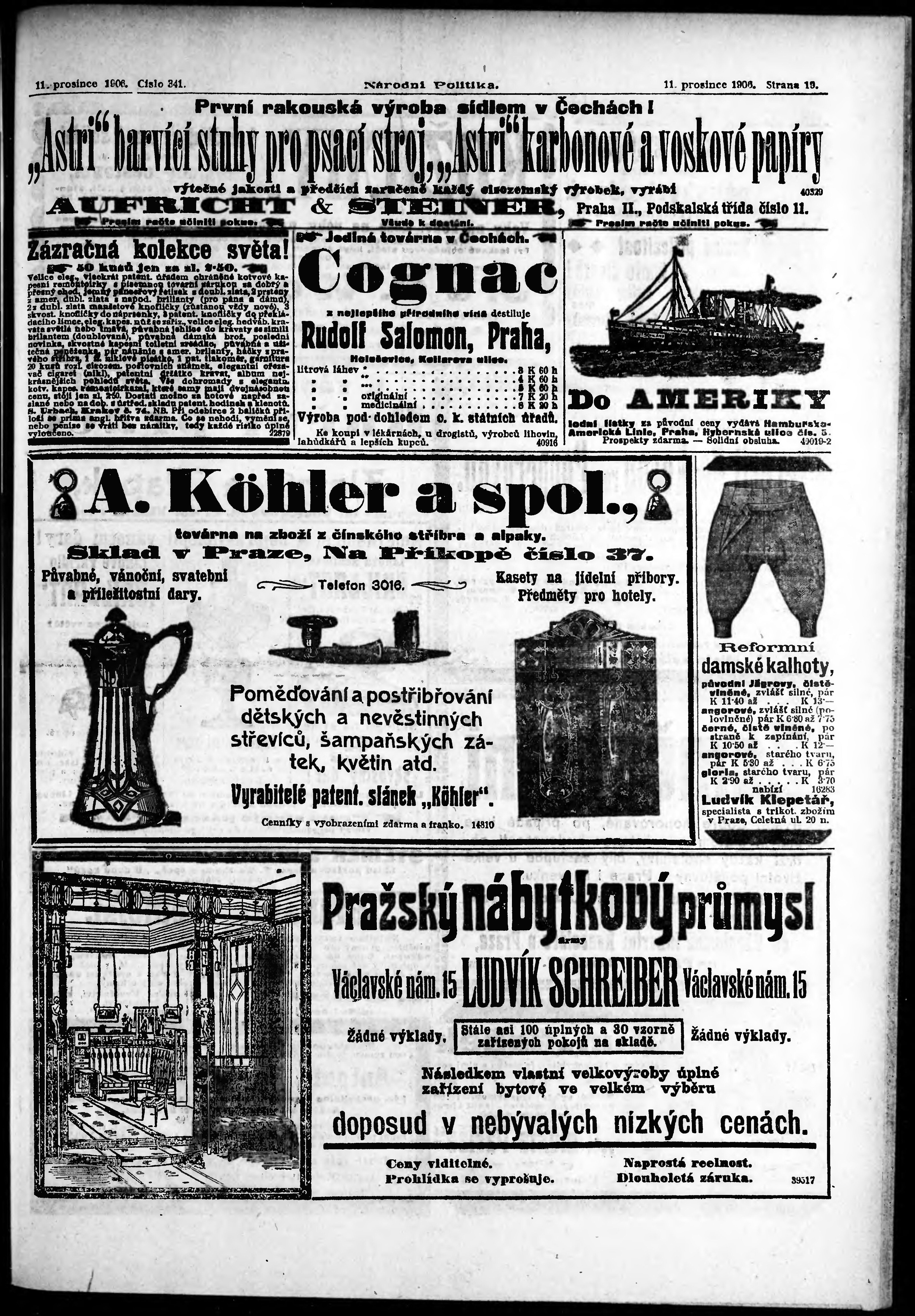 * Datum vydání výtisku: 11.12.1906 Číslo výtisku: 341 Poznámky k výtisku: ranní vydání;