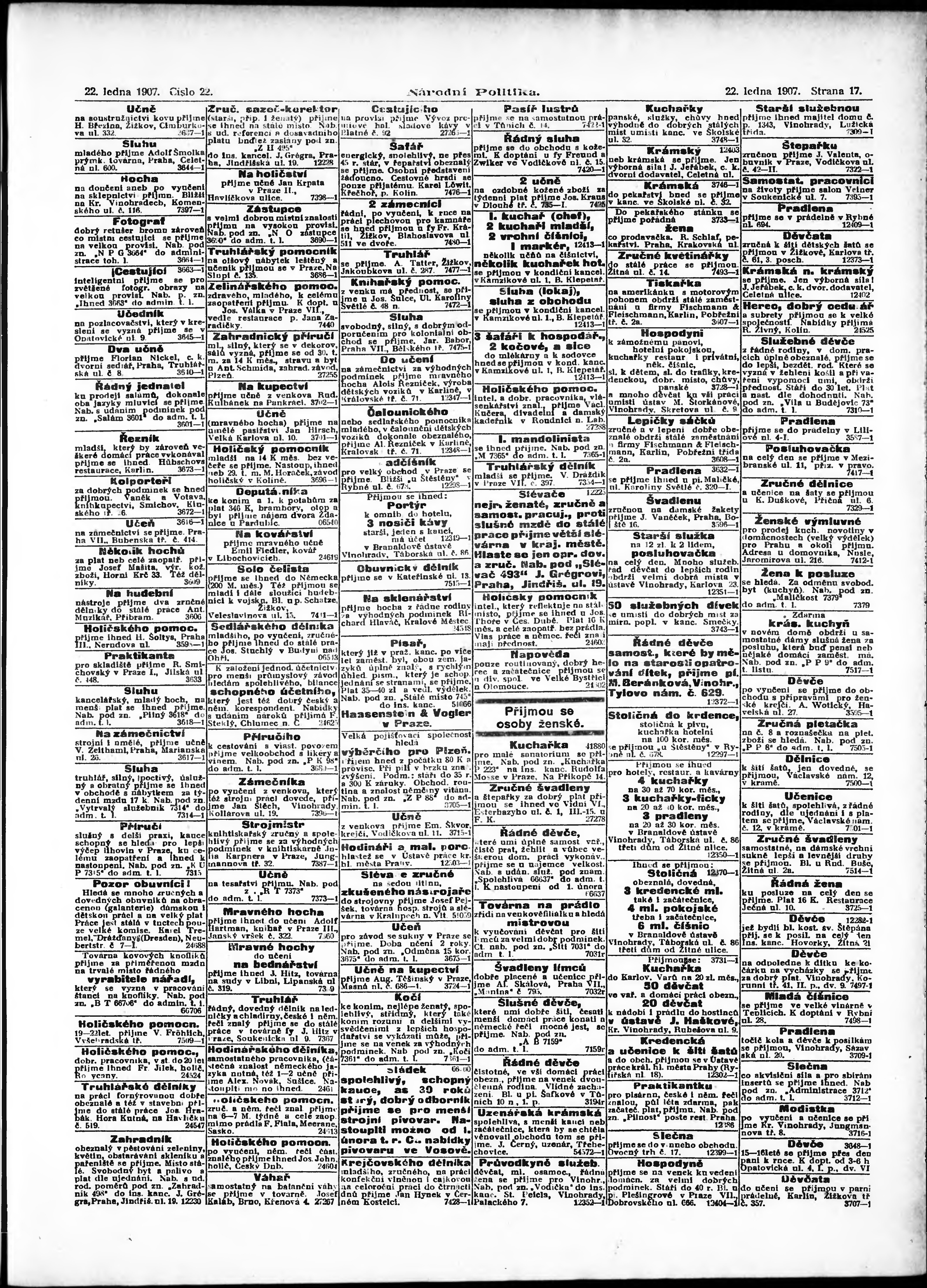 * Datum vydání výtisku: 22.1.1907 Číslo výtisku: 22 Poznámky k výtisku: ranní vydání;