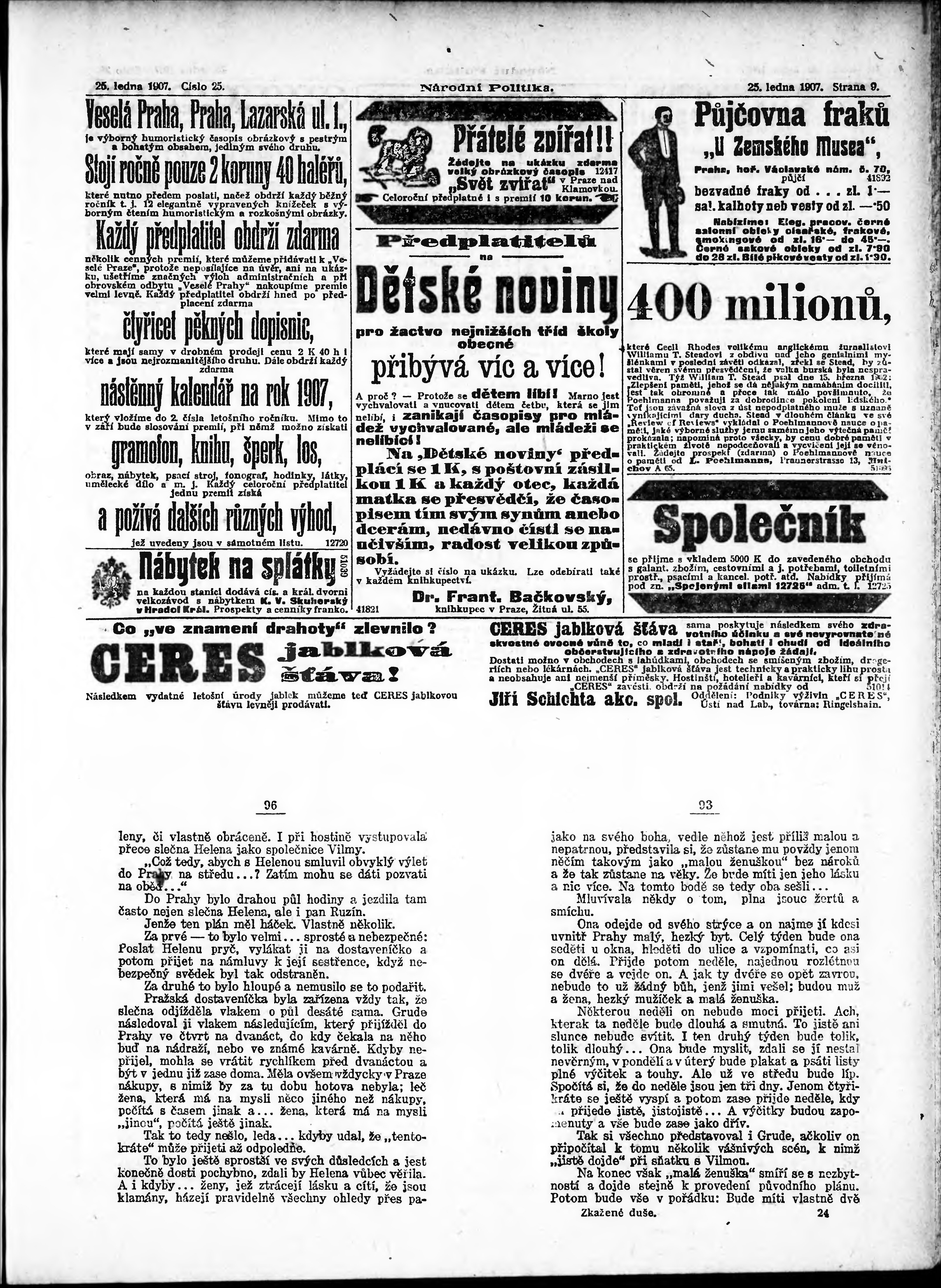 * Datum vydání výtisku: 25.1.1907 Číslo výtisku: 25 Poznámky k výtisku: ranní vydání;