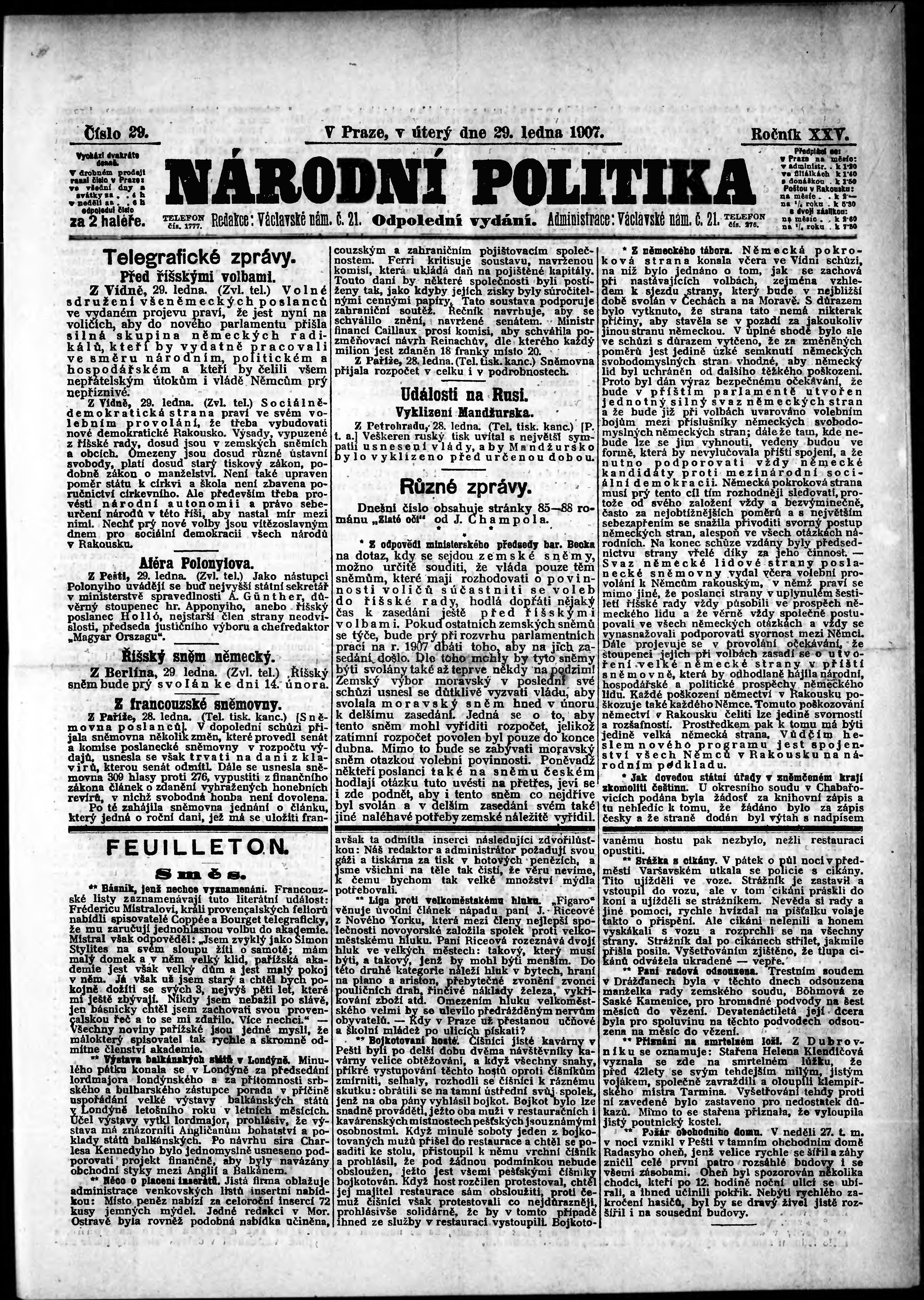* Datum vydání výtisku: 28.1.1907 Číslo výtisku: 28 Poznámky k výtisku: odpolední vydání;