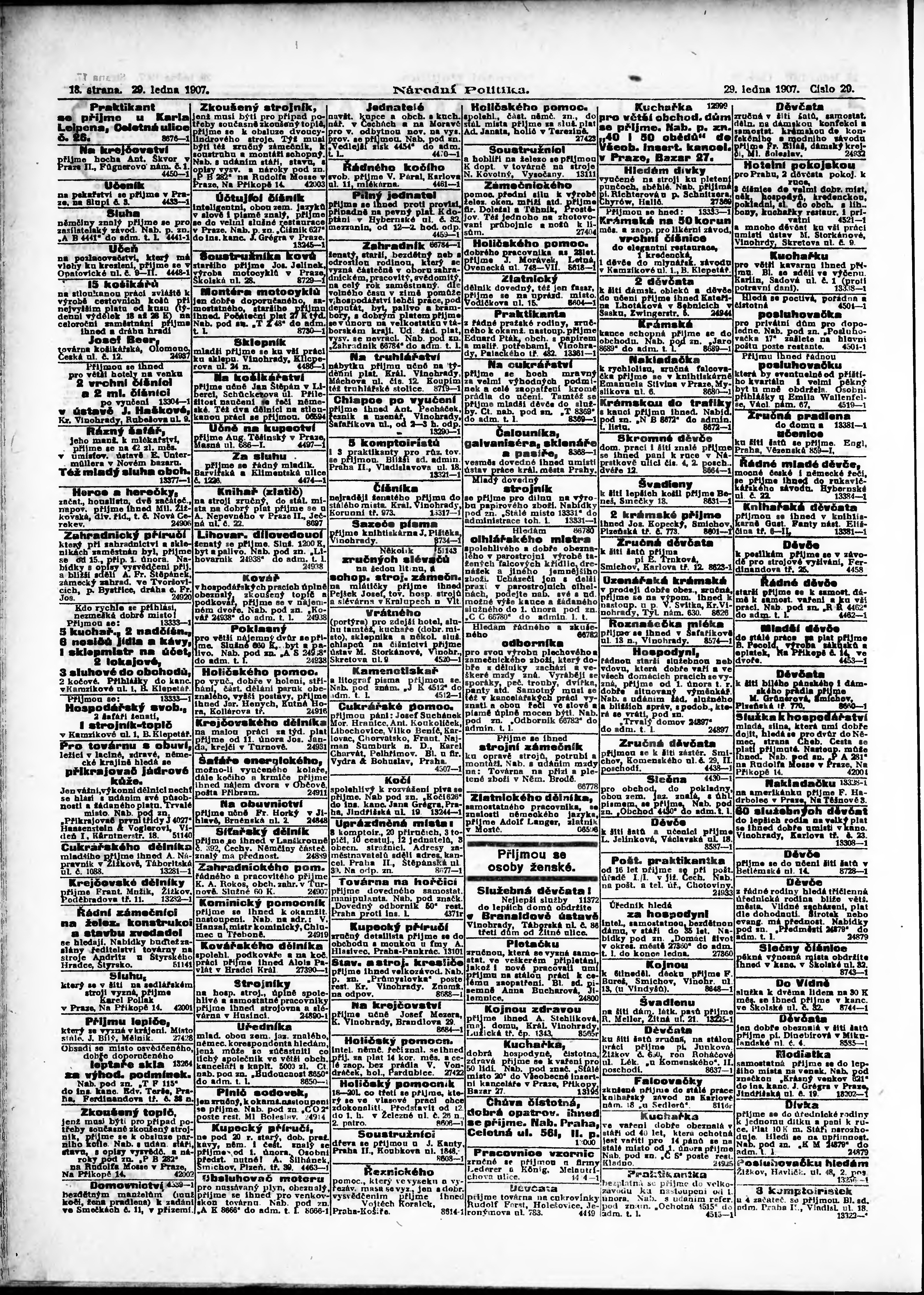 * Datum vydání výtisku: 29.1.1907 Číslo výtisku: 29 Poznámky k výtisku: ranní vydání;