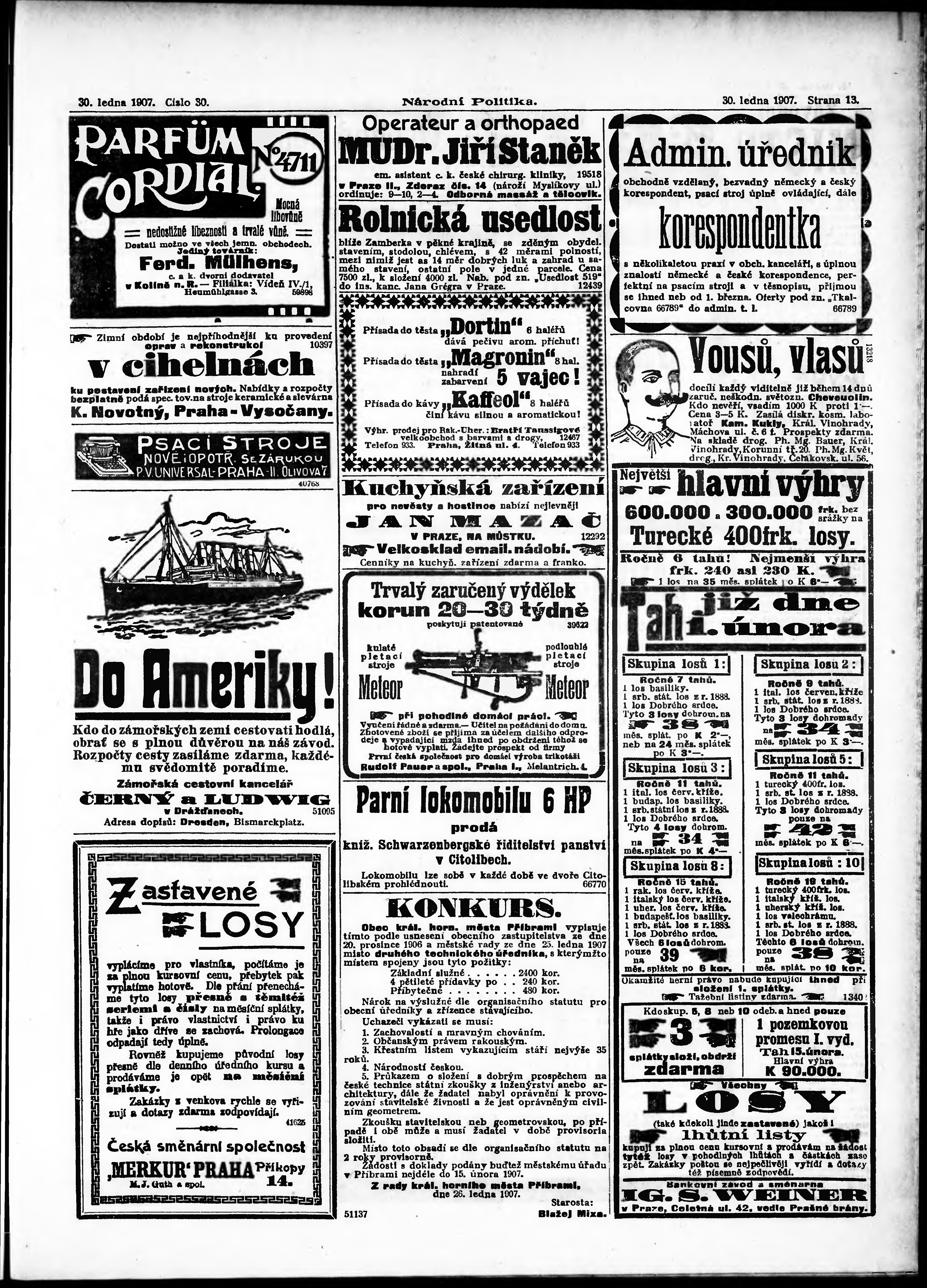 * Datum vydání výtisku: 30.1.1907 Číslo výtisku: 30 Poznámky k výtisku: ranní vydání;