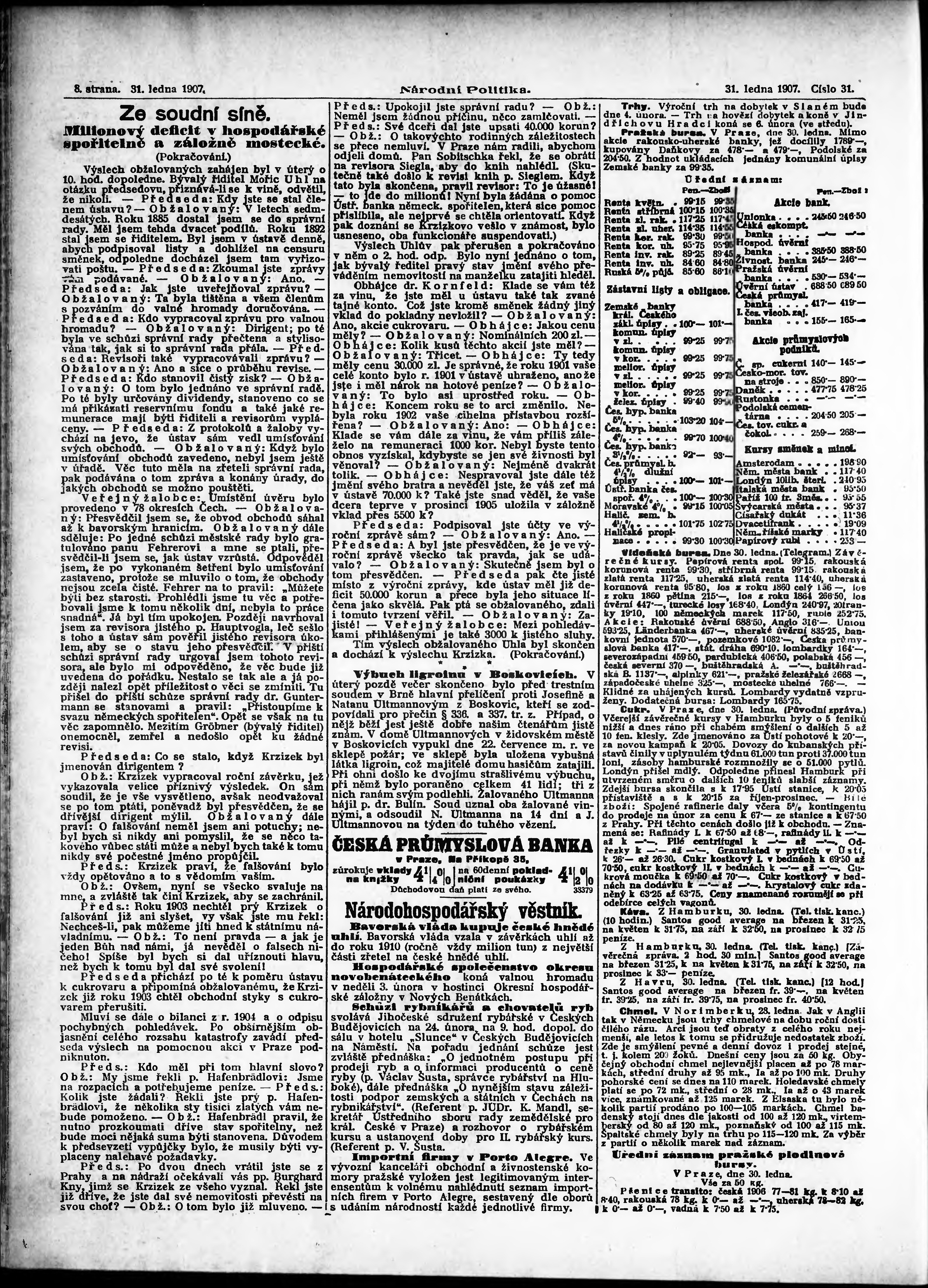 * Datum vydání výtisku: 31.1.1907 Číslo výtisku: 31 Poznámky k výtisku: ranní vydání;