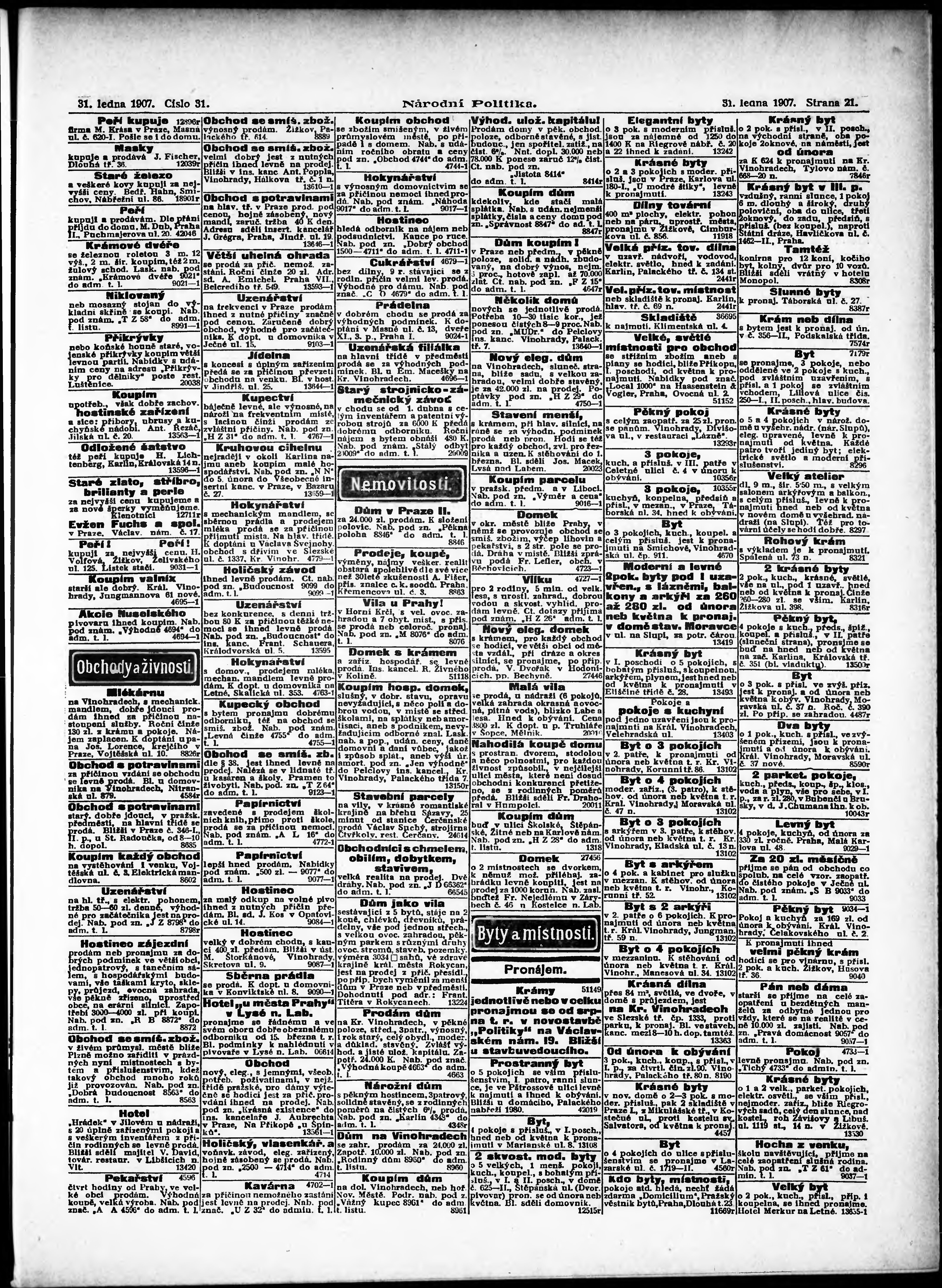 * Datum vydání výtisku: 31.1.1907 Číslo výtisku: 31 Poznámky k výtisku: ranní vydání;