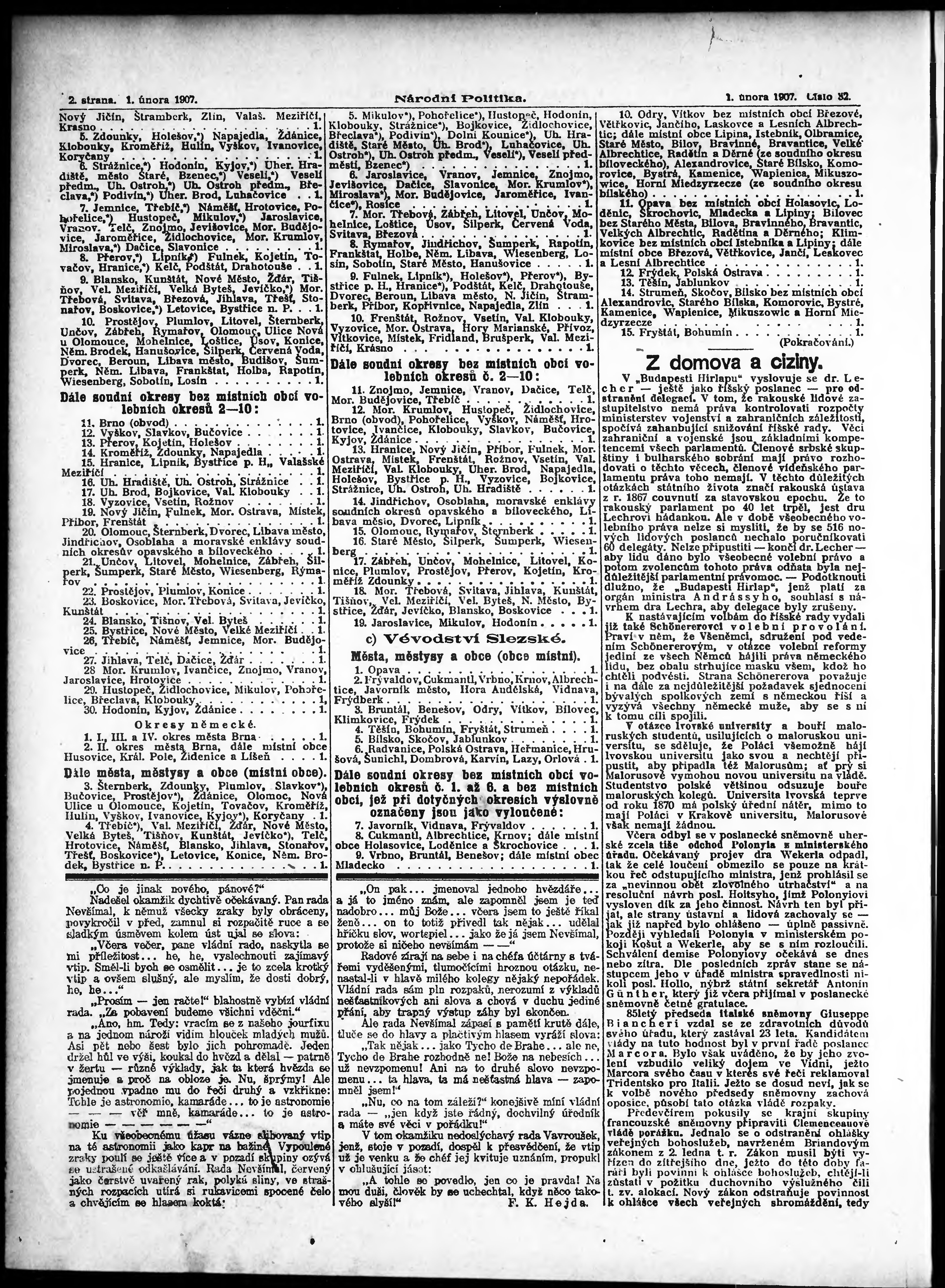 * Datum vydání výtisku: 1.2.1907 Číslo výtisku: 32 Poznámky k výtisku: ranní vydání;