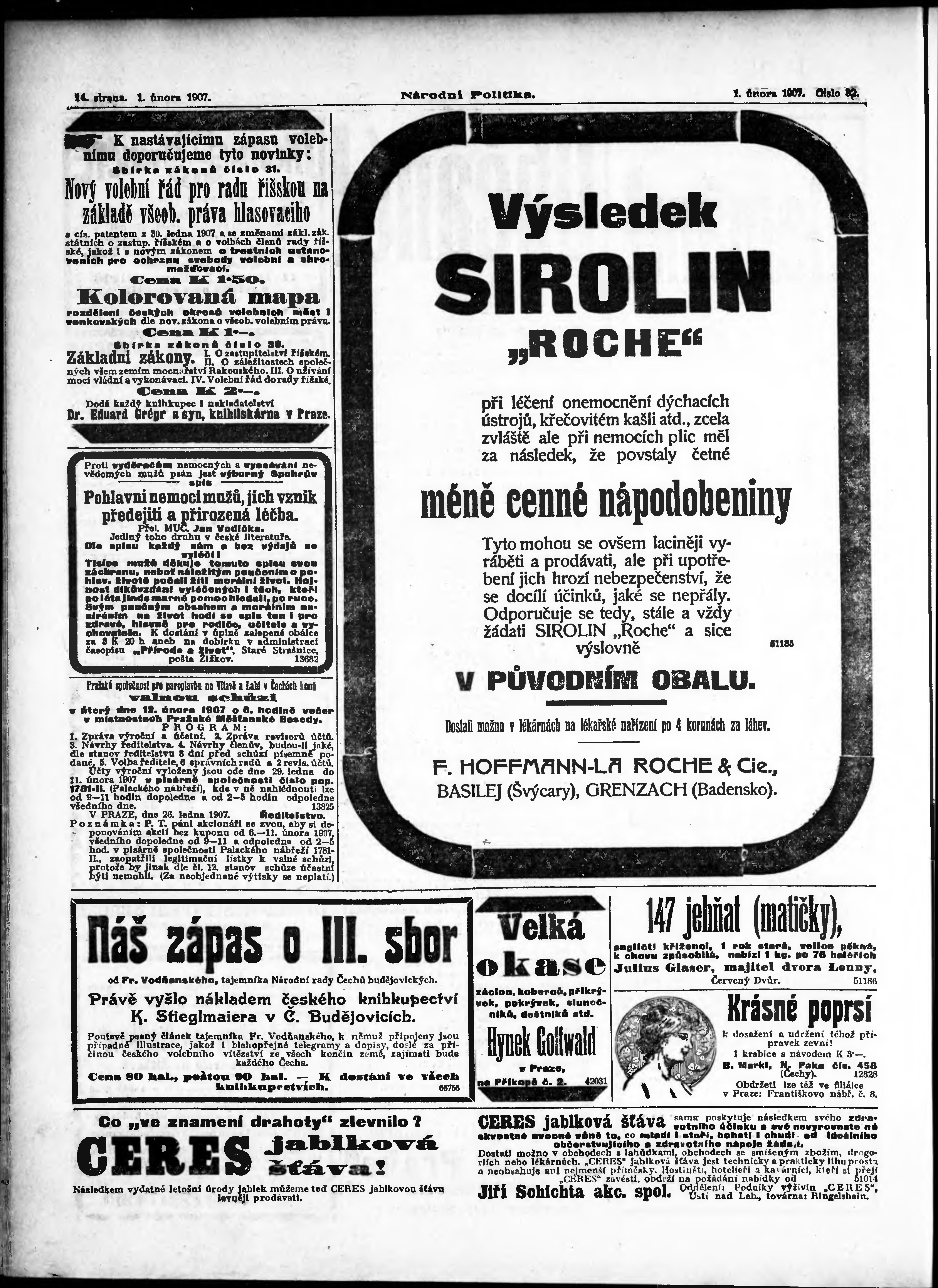 * Datum vydání výtisku: 1.2.1907 Číslo výtisku: 32 Poznámky k výtisku: ranní vydání;