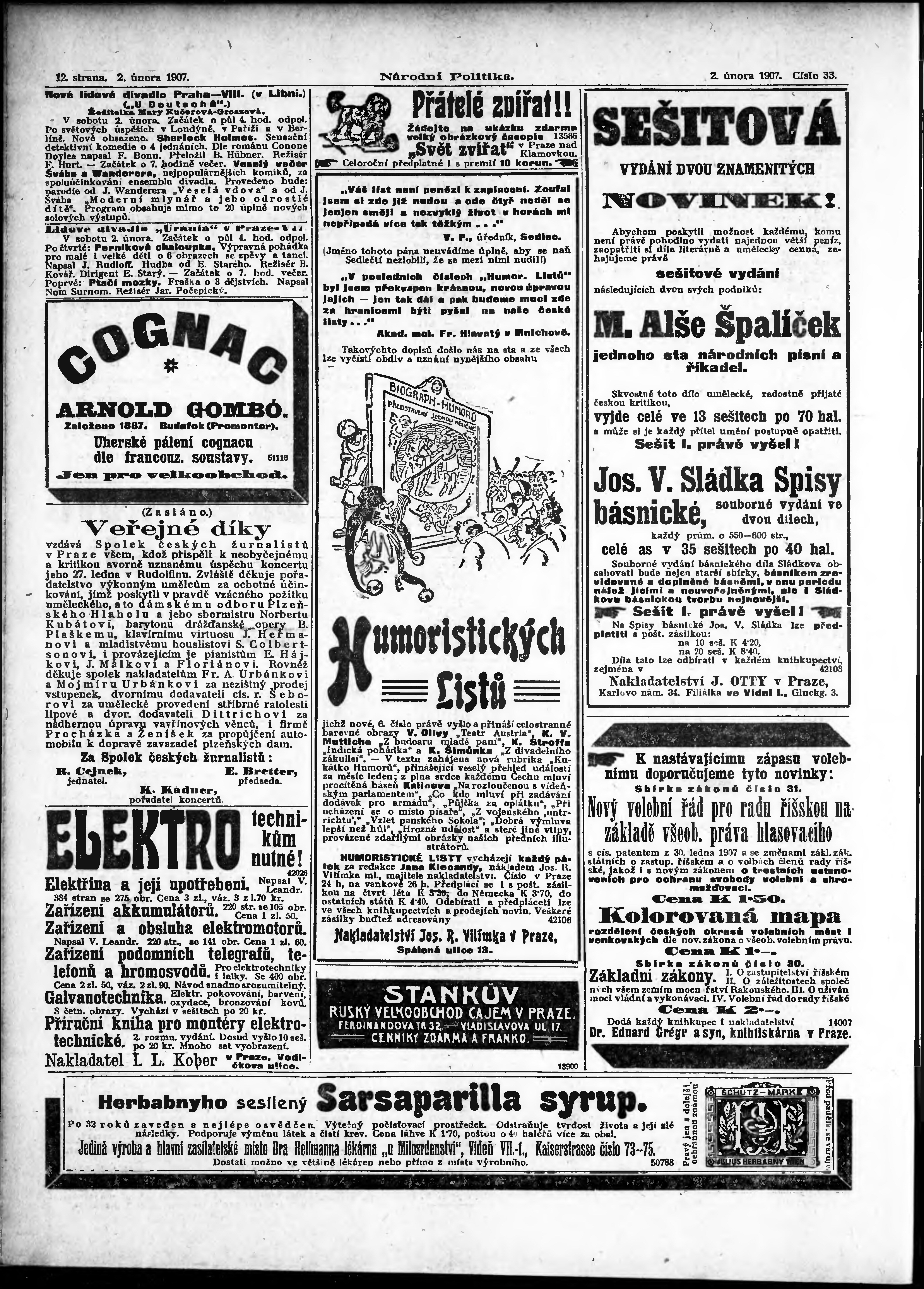* Datum vydání výtisku: 2.2.1907 Číslo výtisku: 33 Poznámky k výtisku: ranní vydání;