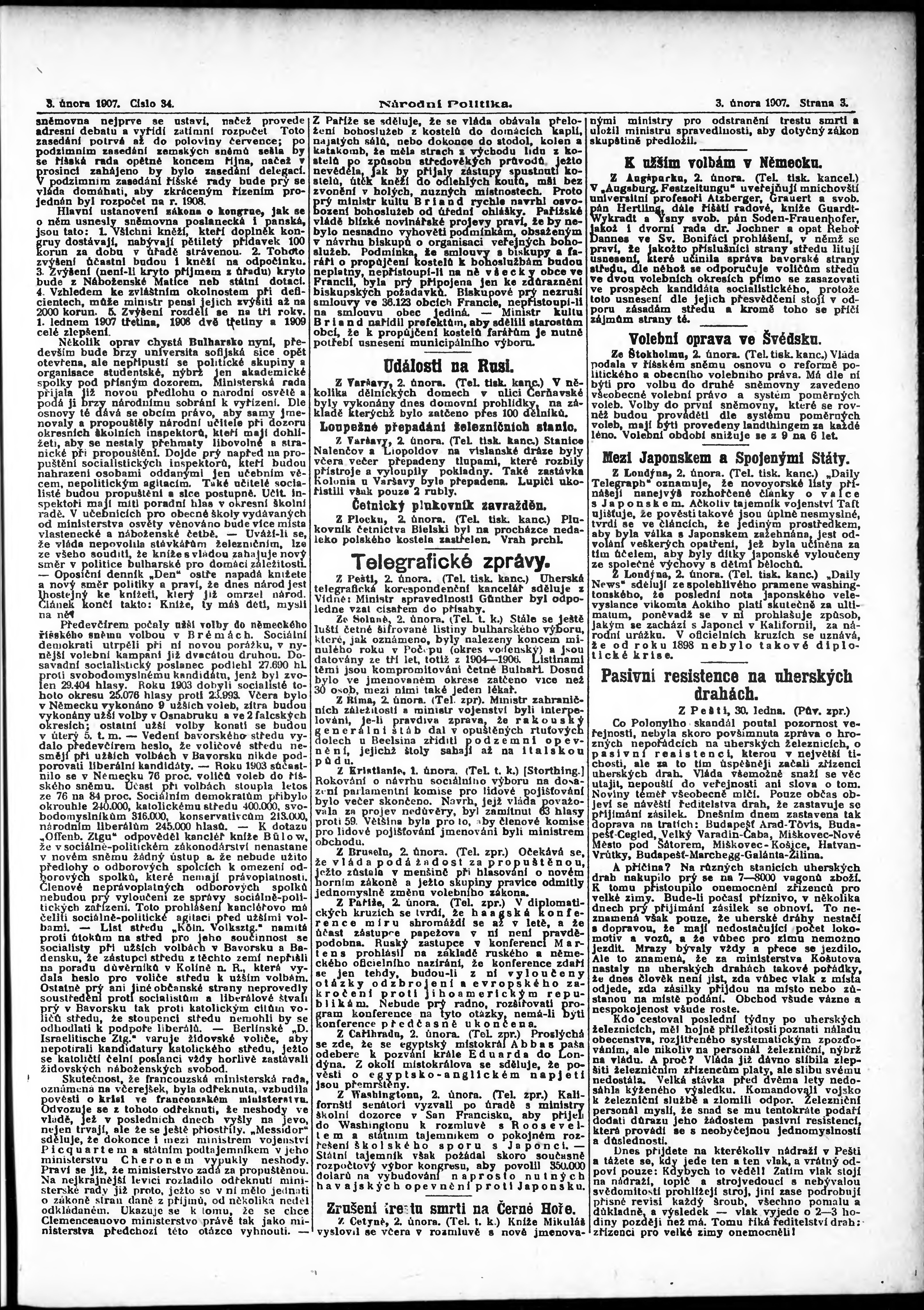 * Datum vydání výtisku: 3.2.1907 Číslo výtisku: 34 Poznámky k výtisku: ranní vydání;