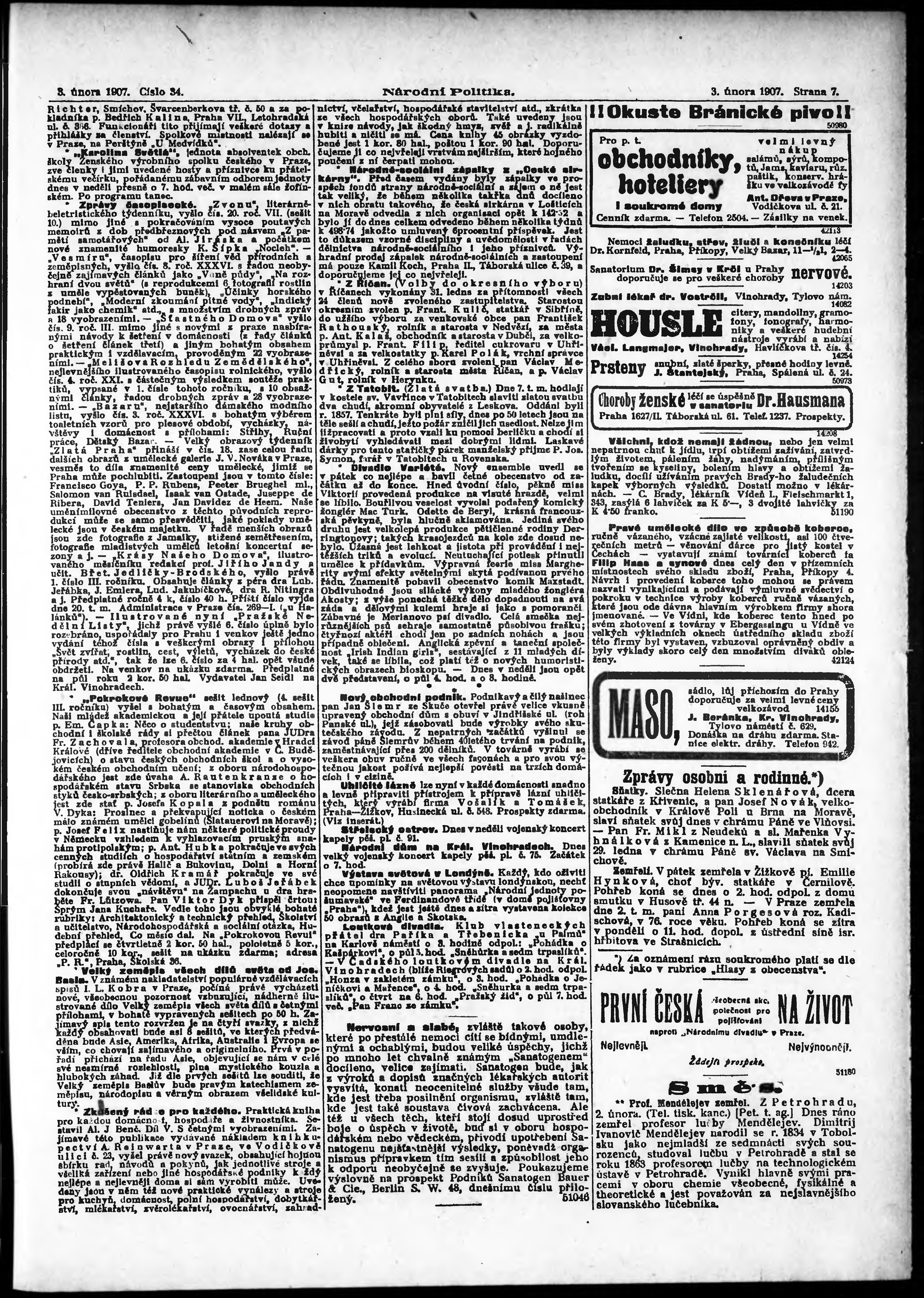 * Datum vydání výtisku: 3.2.1907 Číslo výtisku: 34 Poznámky k výtisku: ranní vydání;