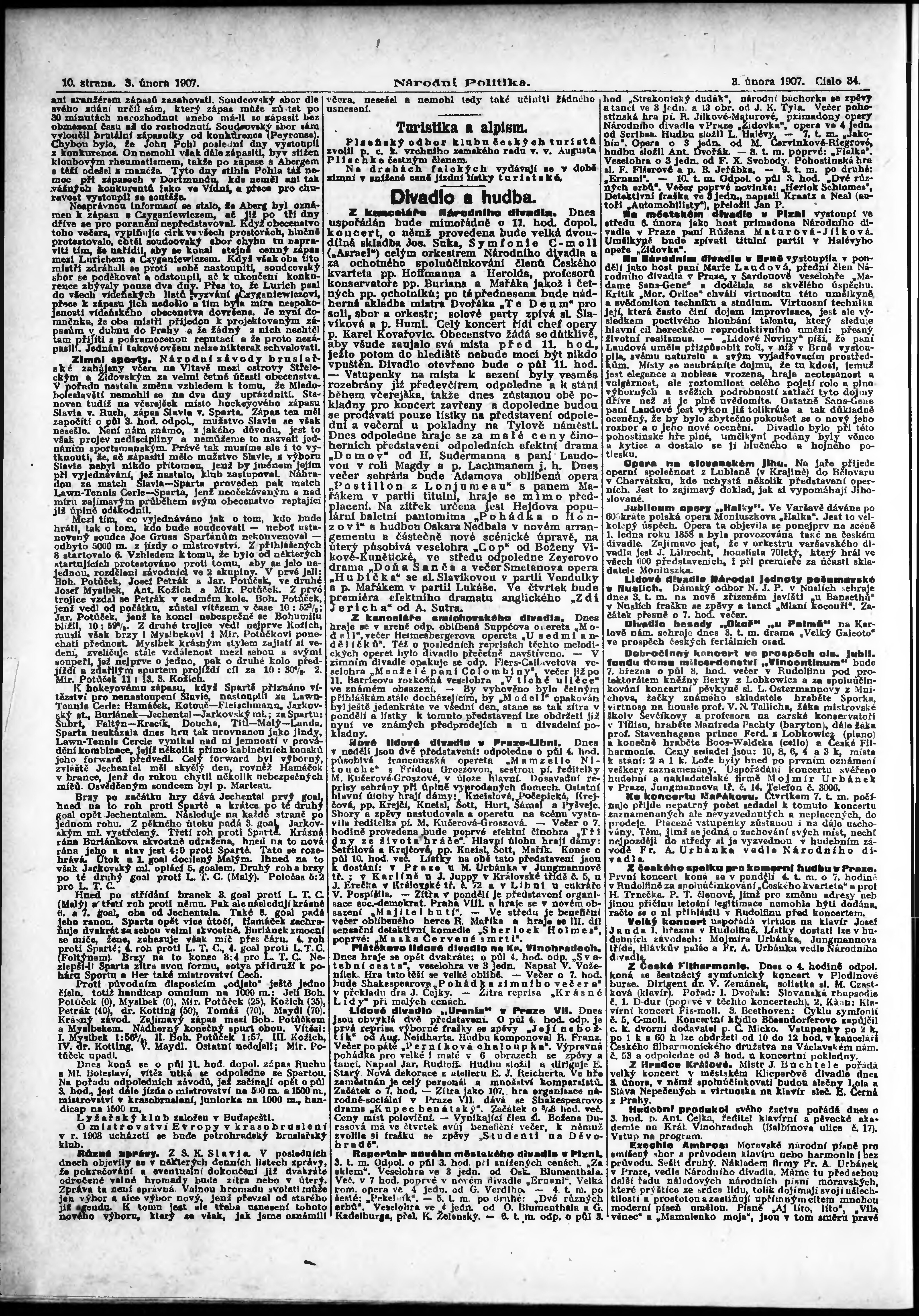 * Datum vydání výtisku: 3.2.1907 Číslo výtisku: 34 Poznámky k výtisku: ranní vydání;