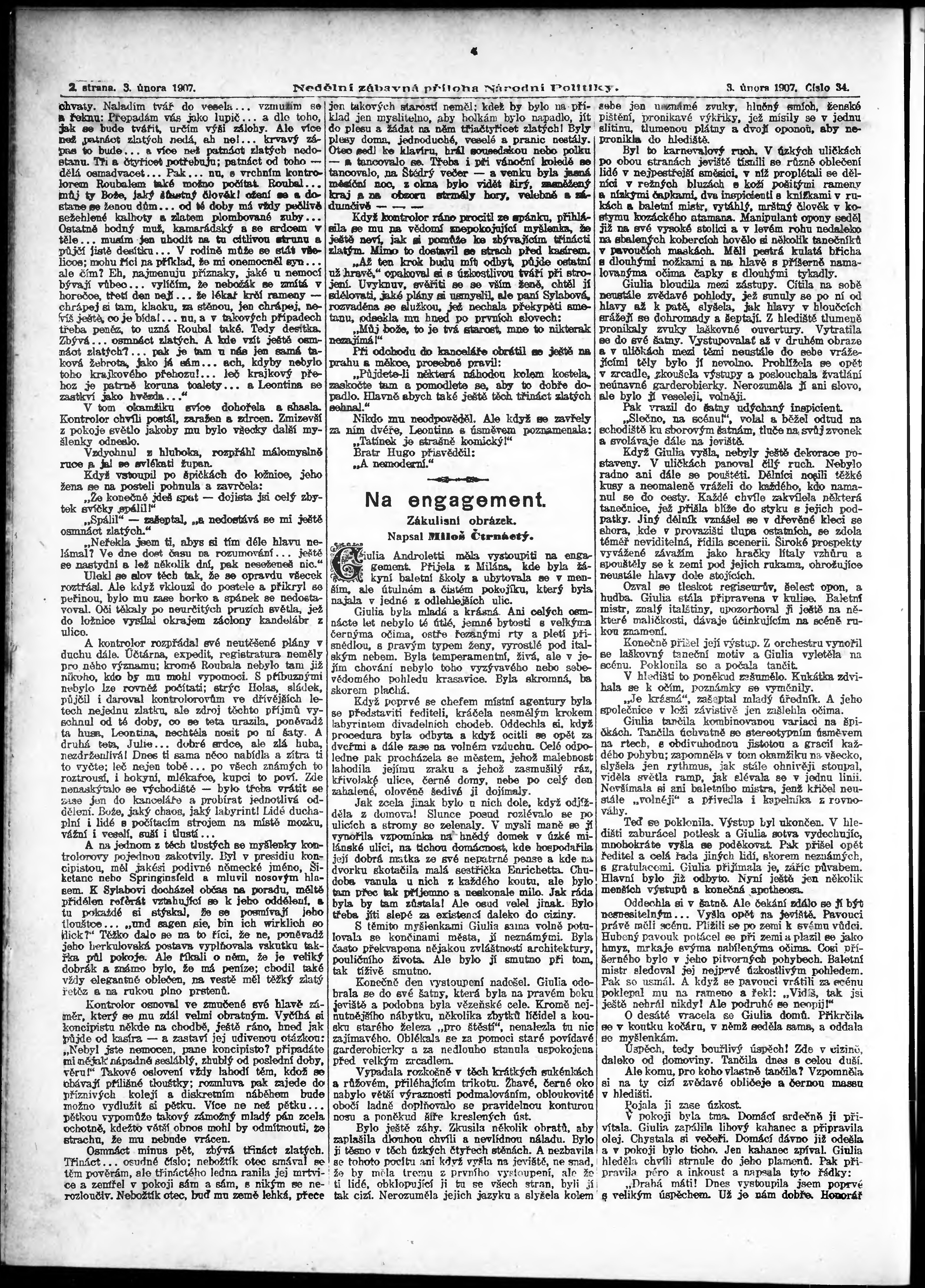 * Datum vydání výtisku: 3.2.1907 Číslo výtisku: 34 Typ výtisku: příloha Poznámky k výtisku: s. 14 - 15 není k dispozici;