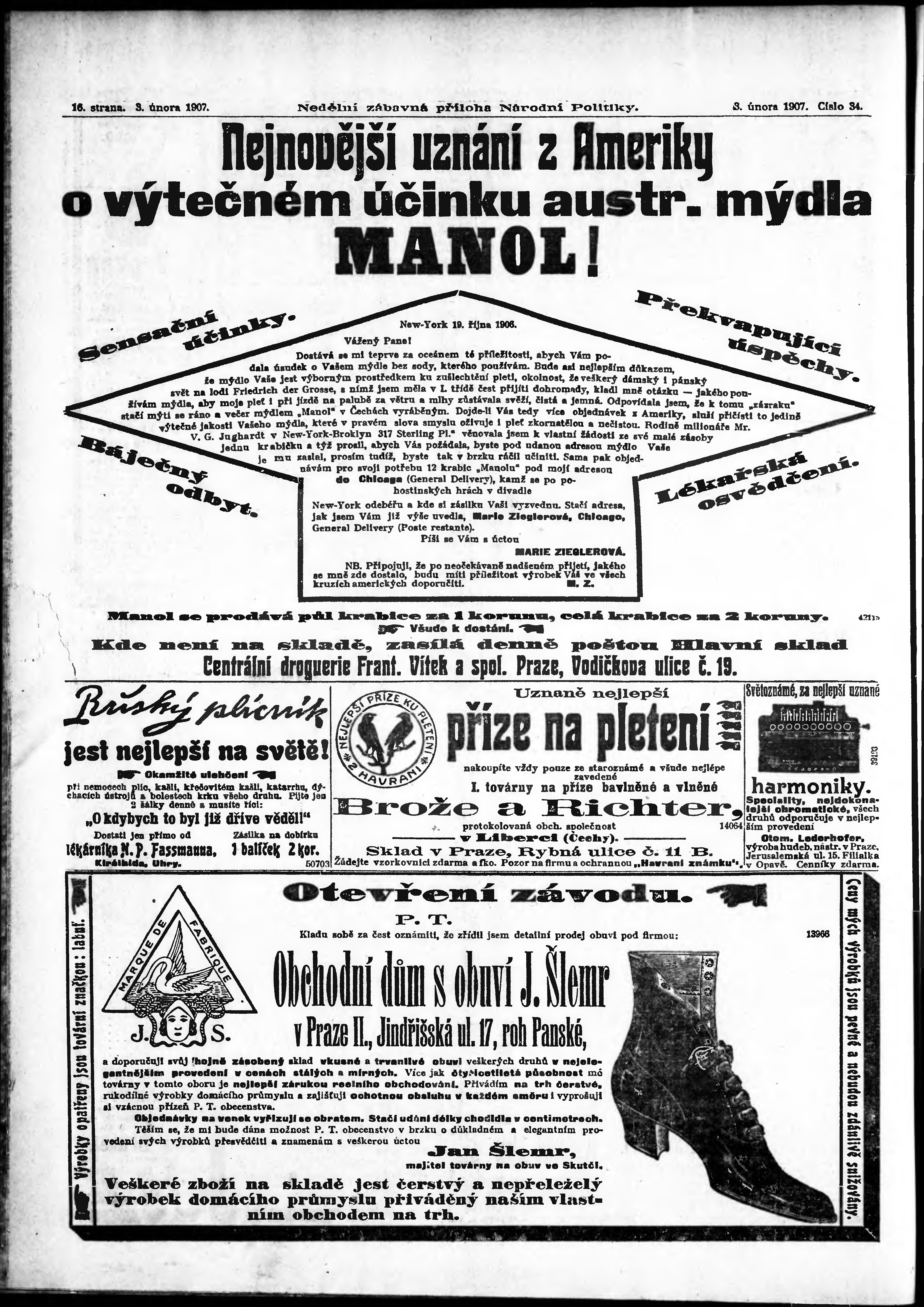 * Datum vydání výtisku: 3.2.1907 Číslo výtisku: 34 Typ výtisku: příloha Poznámky k výtisku: s. 14 - 15 není k dispozici;