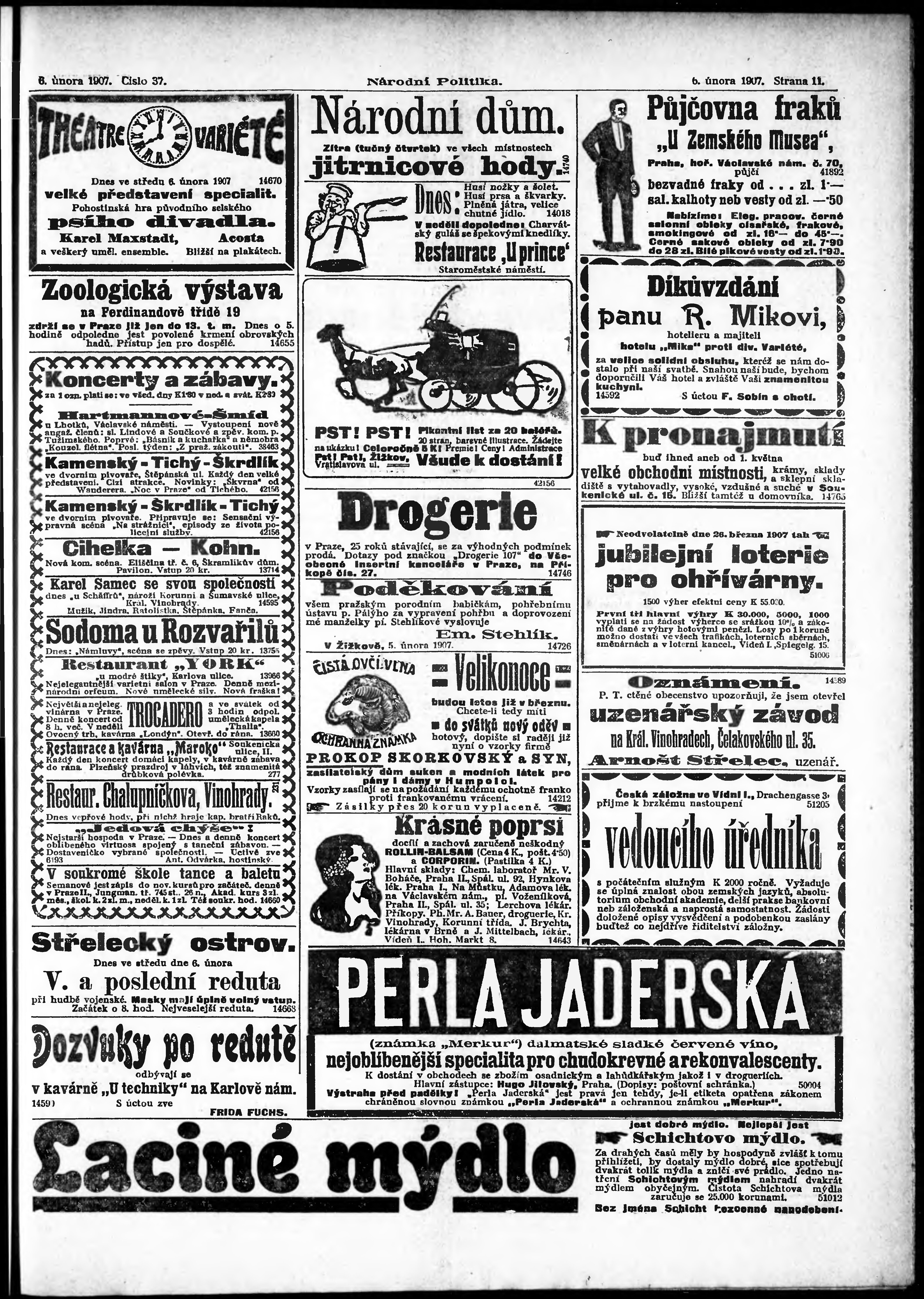 * Datum vydání výtisku: 6.2.1907 Číslo výtisku: 37 Poznámky k výtisku: ranní vydání;