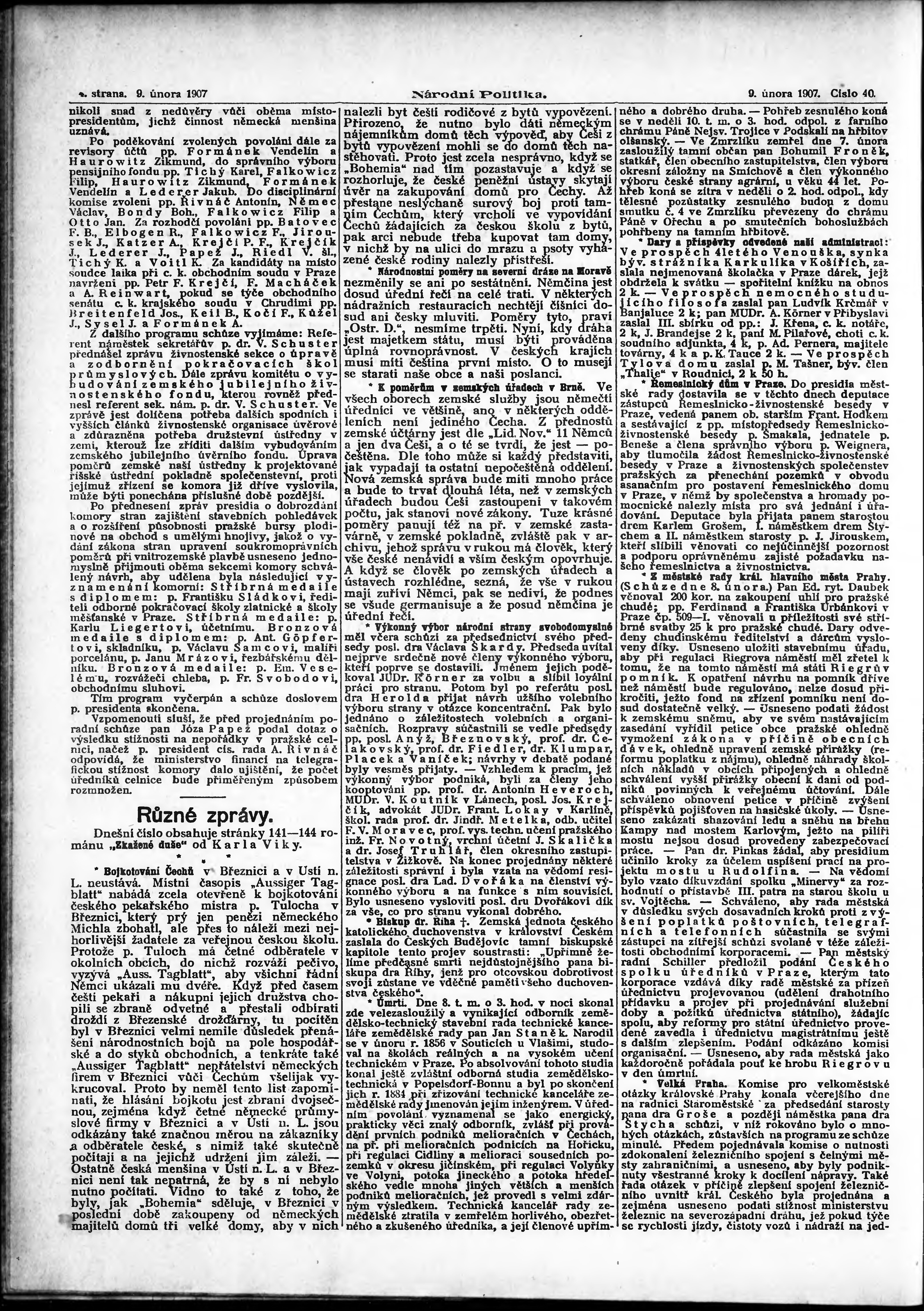 * Datum vydání výtisku: 9.2.1907 Číslo výtisku: 40 Poznámky k výtisku: ranní vydání;