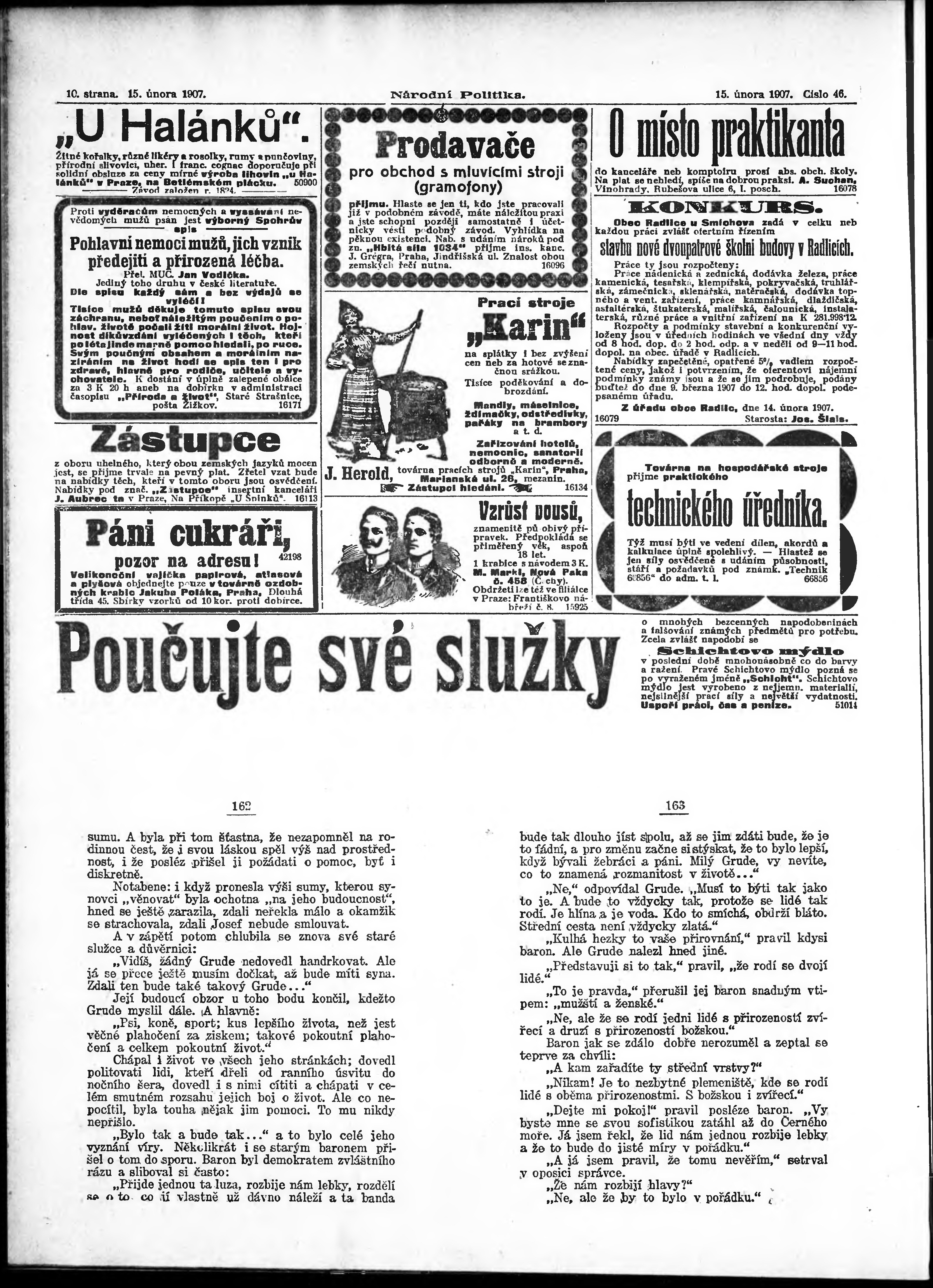 * Datum vydání výtisku: 15.2.1907 Číslo výtisku: 46 Poznámky k výtisku: ranní vydání;
