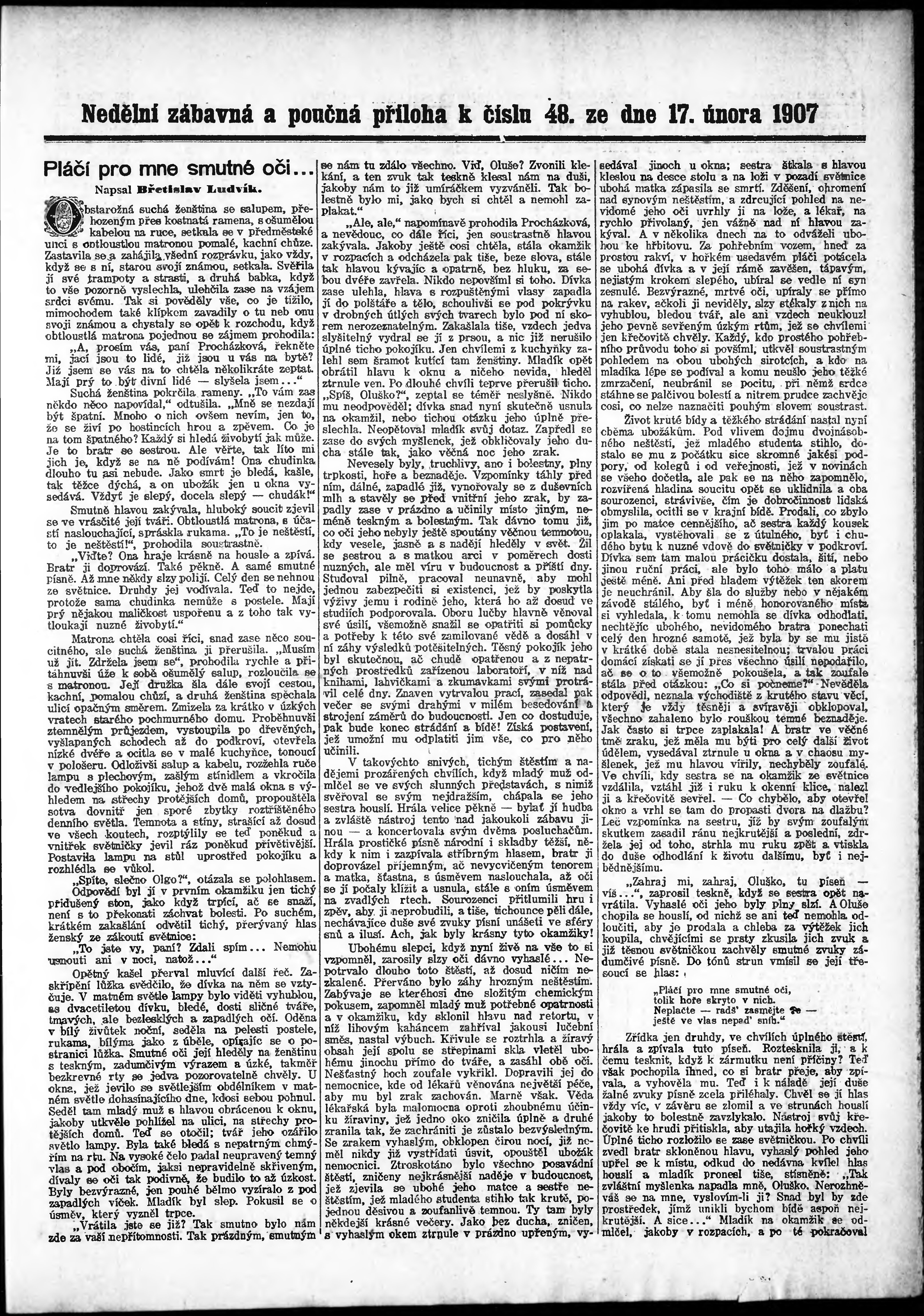 * Datum vydání výtisku: 17.2.1907 Číslo výtisku: 48 Typ výtisku: příloha