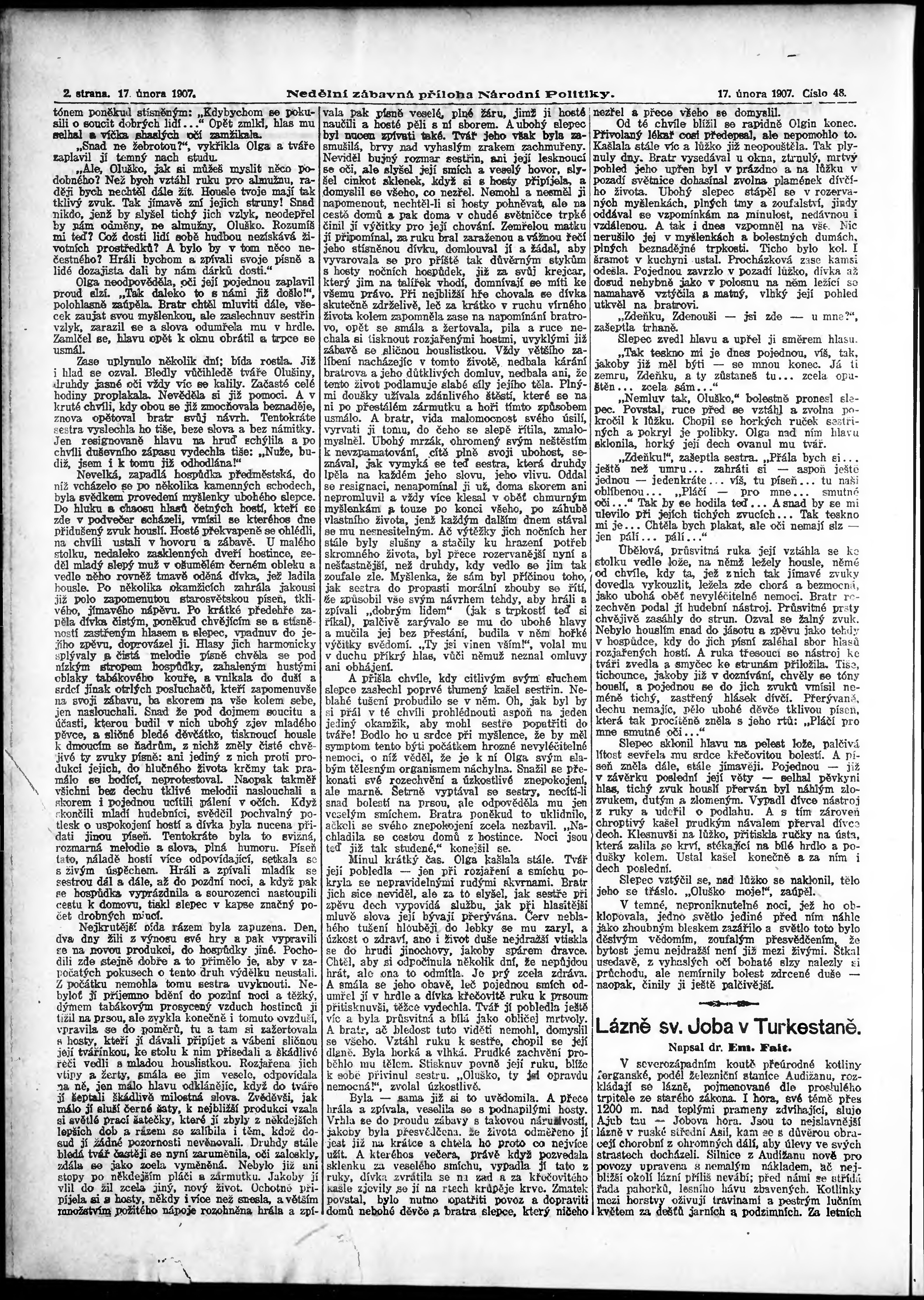 * Datum vydání výtisku: 17.2.1907 Číslo výtisku: 48 Typ výtisku: příloha