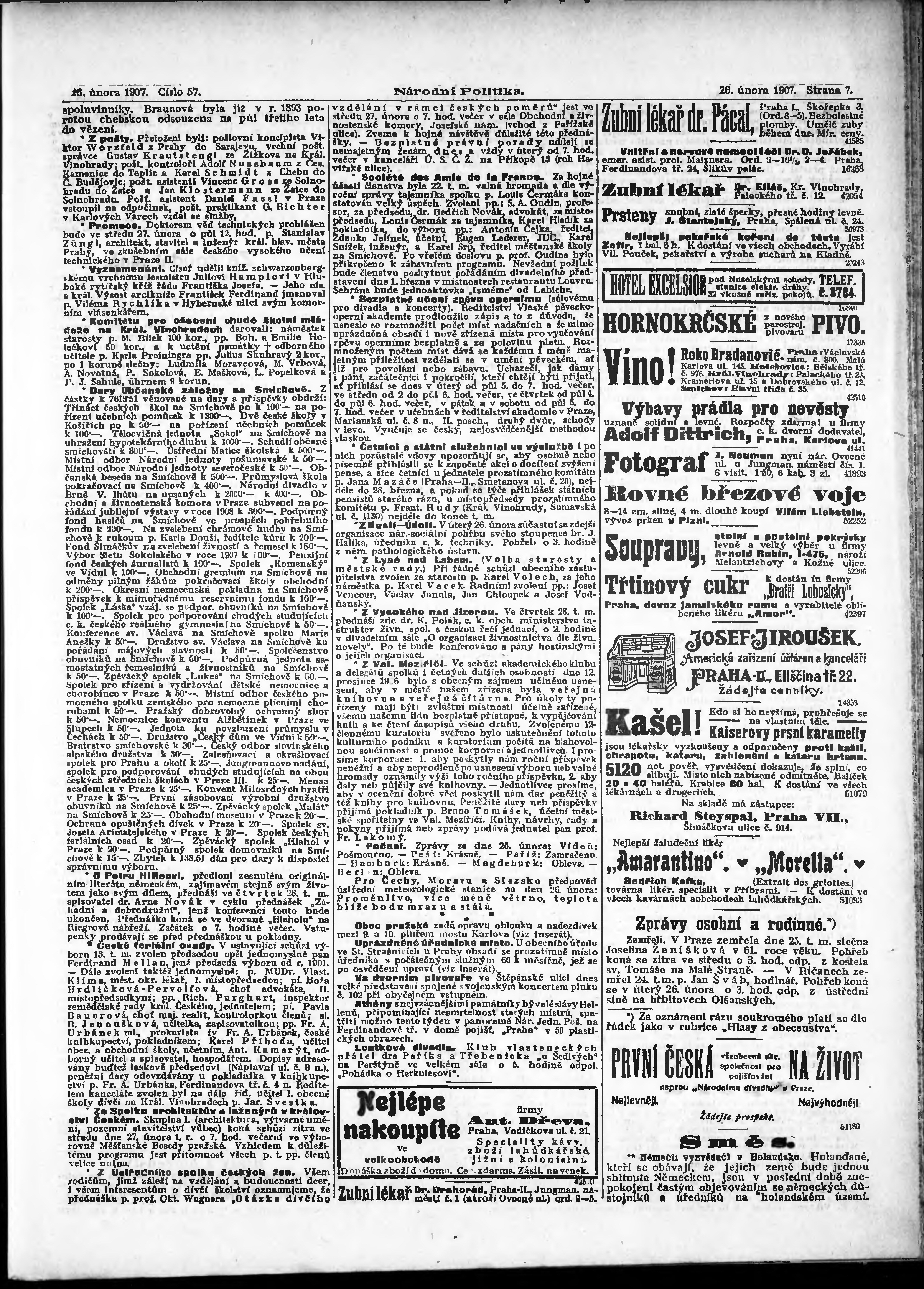 * Datum vydání výtisku: 26.2.1907 Číslo výtisku: 57 Poznámky k výtisku: ranní vydání;