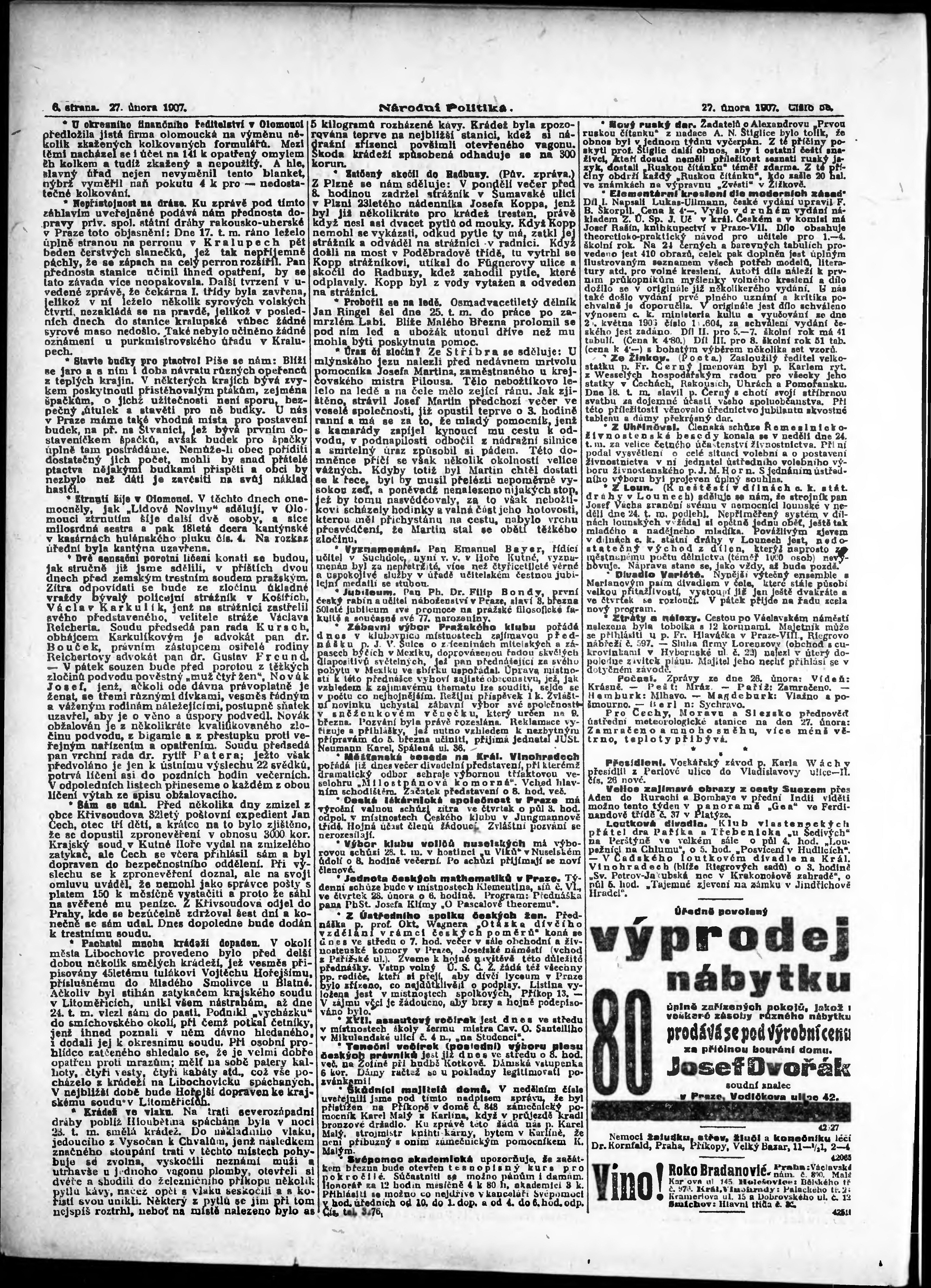* Datum vydání výtisku: 27.2.1907 Číslo výtisku: 58 Poznámky k výtisku: ranní vydání;