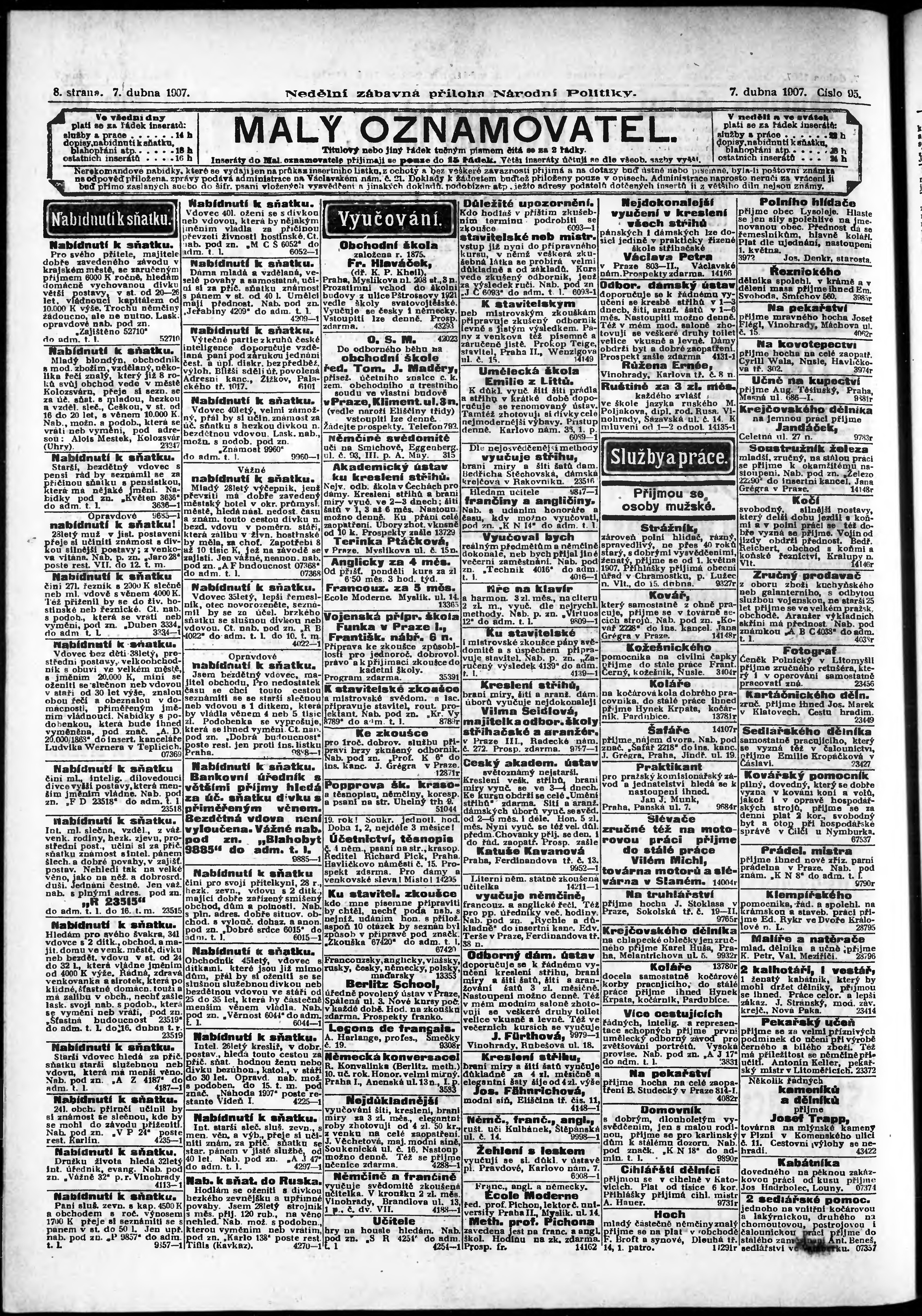* Datum vydání výtisku: 7.4.1907 Číslo výtisku: 95 Typ výtisku: příloha