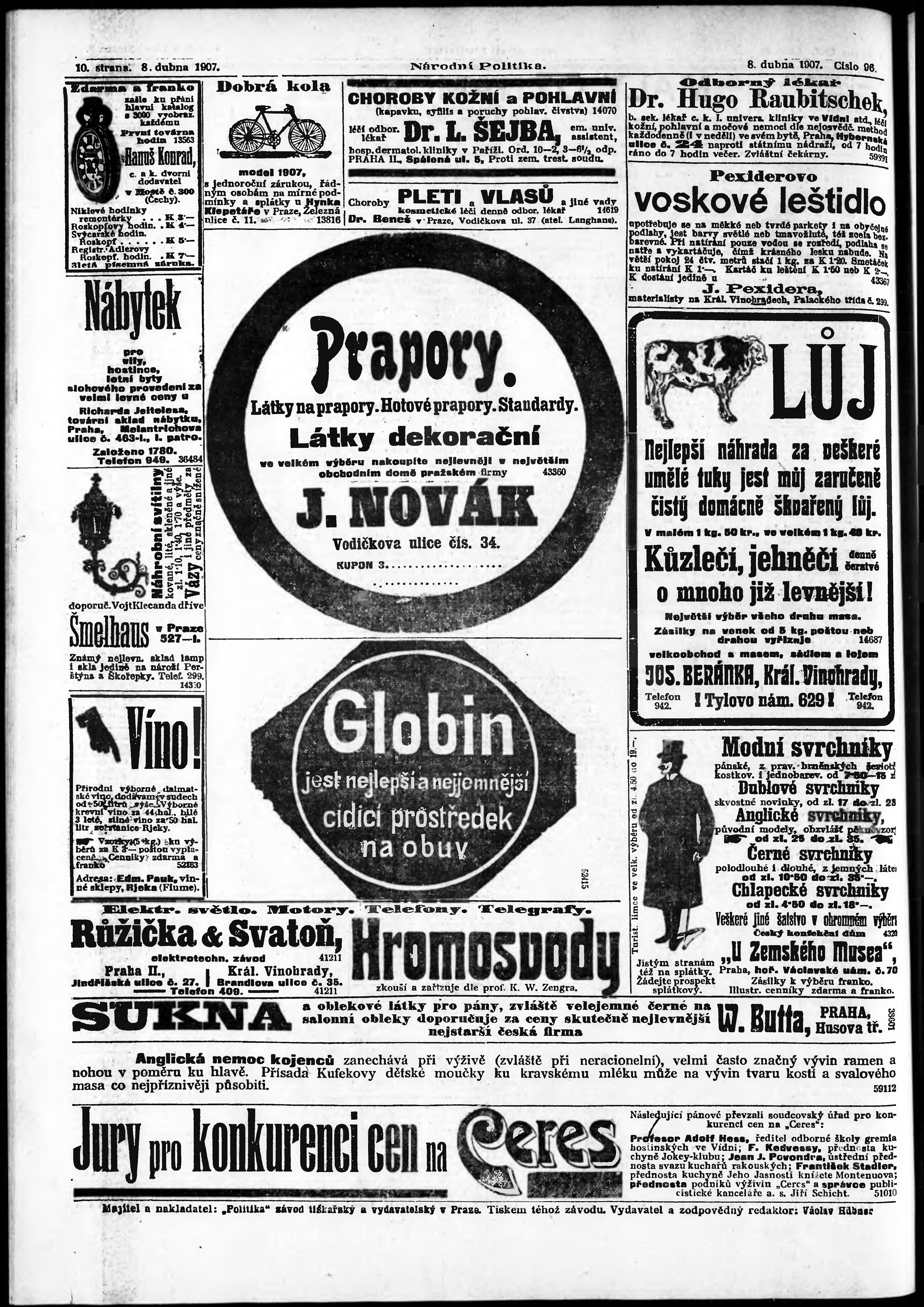 * Datum vydání výtisku: 8.4.1907 Číslo výtisku: 96 Poznámky k výtisku: ranní vydání;
