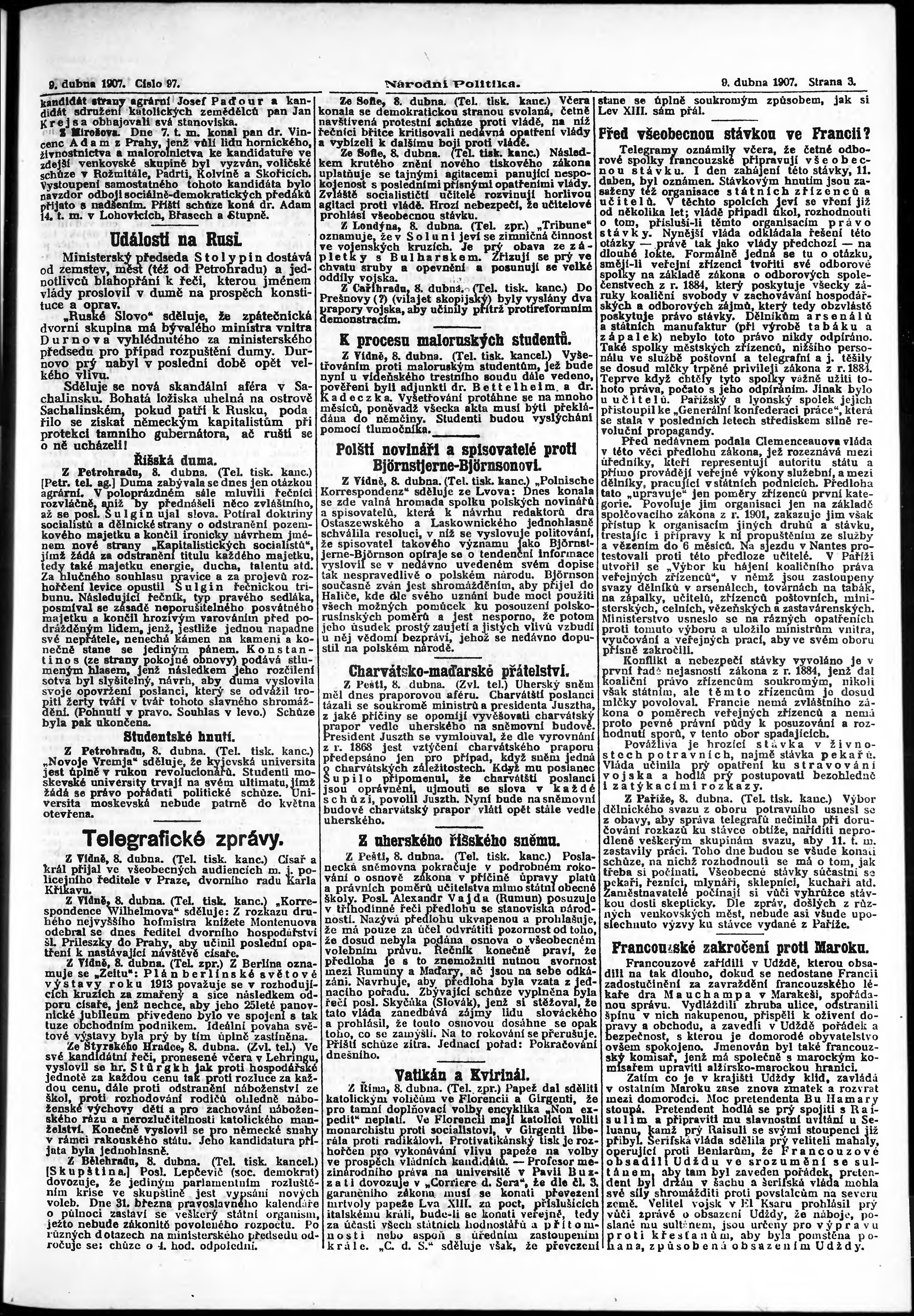 * Datum vydání výtisku: 9.4.1907 Číslo výtisku: 97 Poznámky k výtisku: ranní vydání;