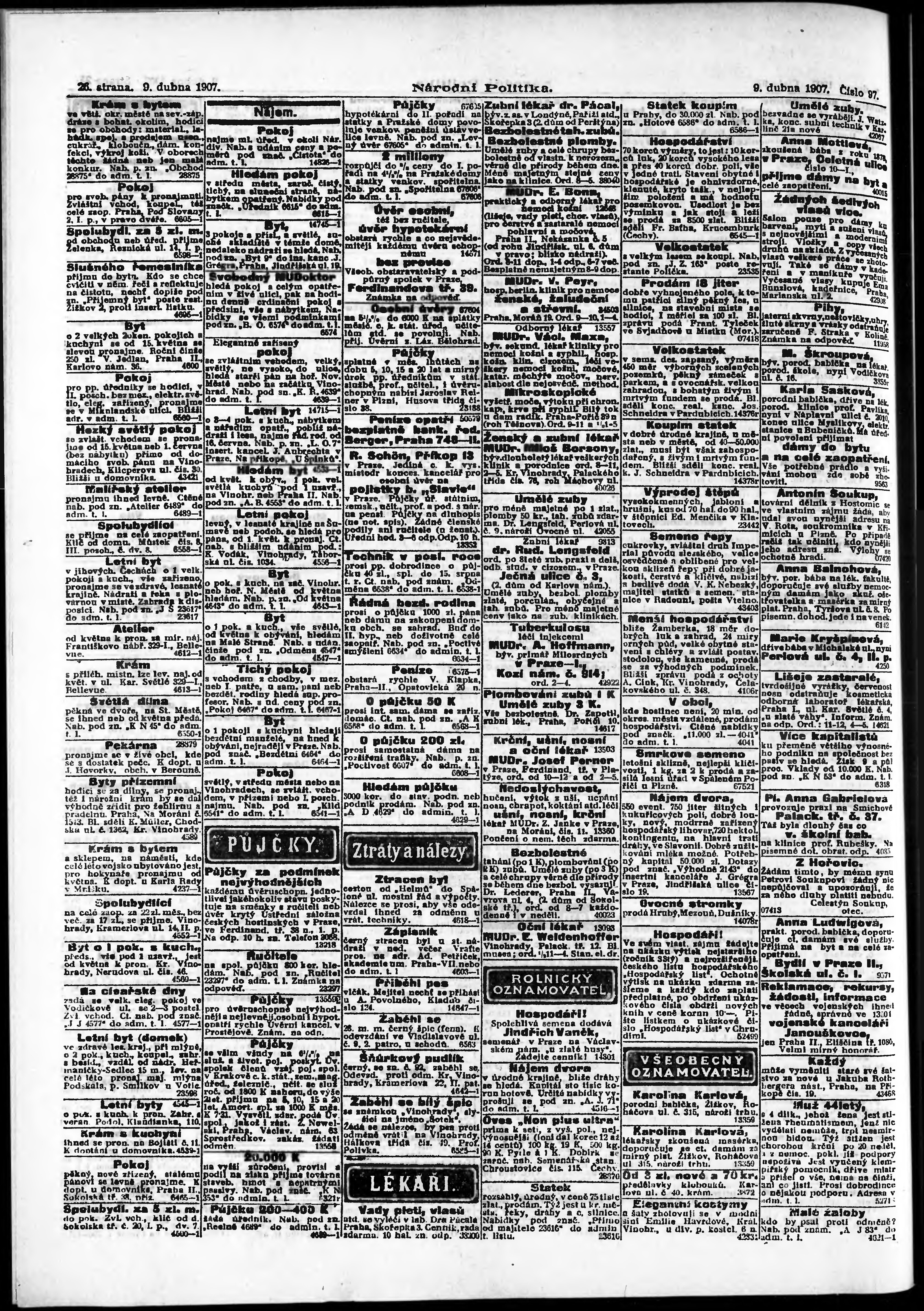 * Datum vydání výtisku: 9.4.1907 Číslo výtisku: 97 Poznámky k výtisku: ranní vydání;