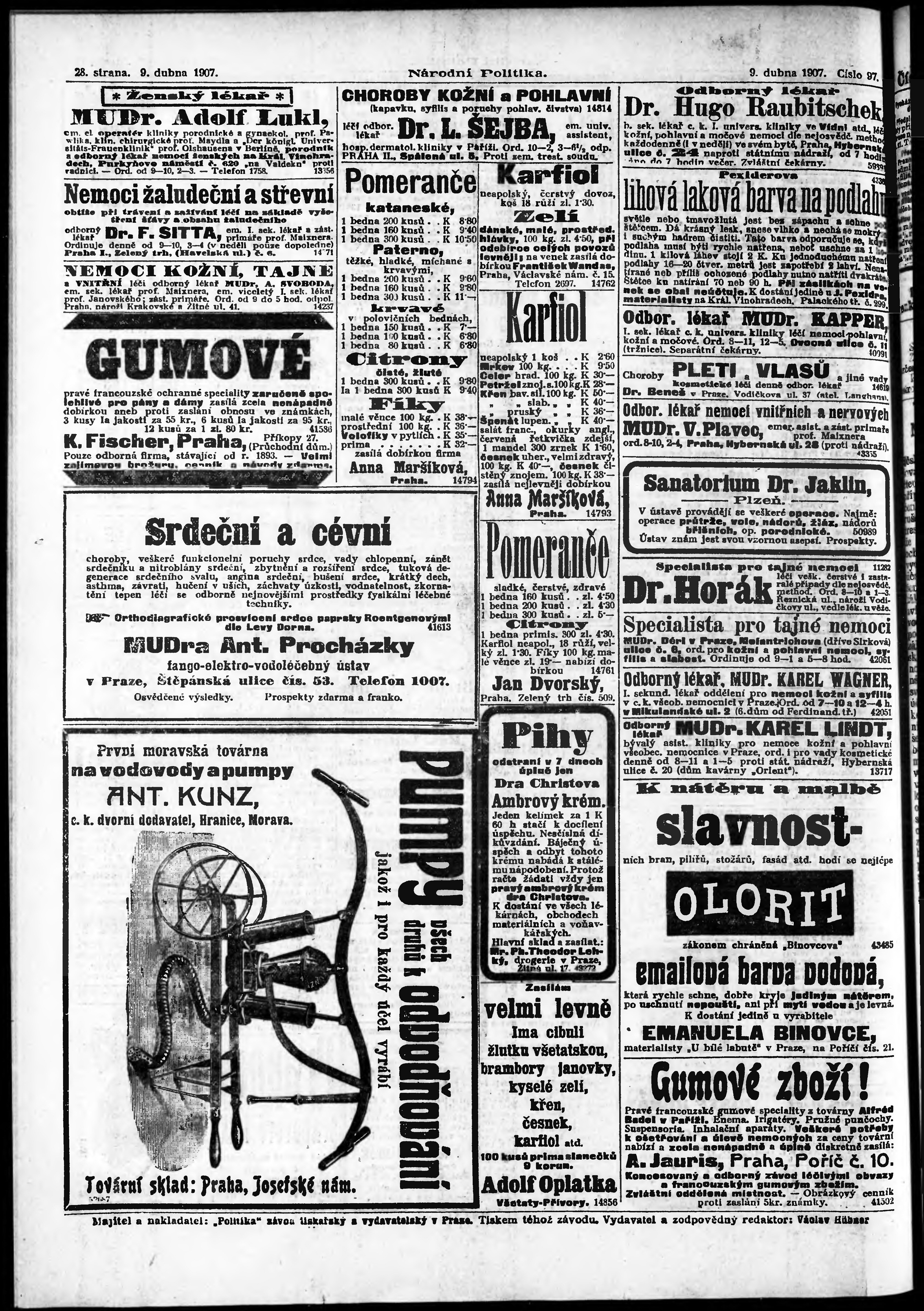 * Datum vydání výtisku: 9.4.1907 Číslo výtisku: 97 Poznámky k výtisku: ranní vydání;