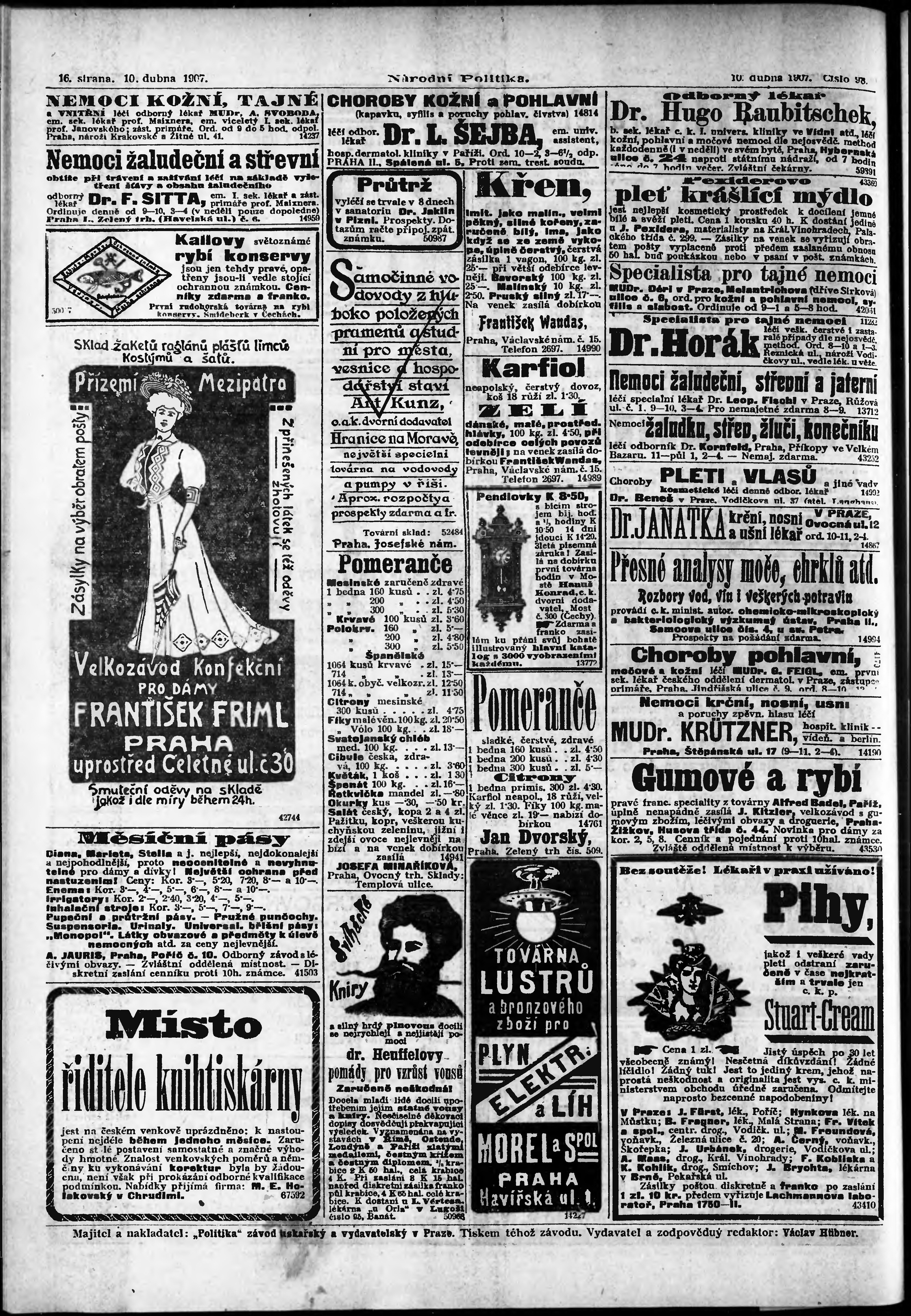 * Datum vydání výtisku: 10.4.1907 Číslo výtisku: 98 Poznámky k výtisku: ranní vydání;