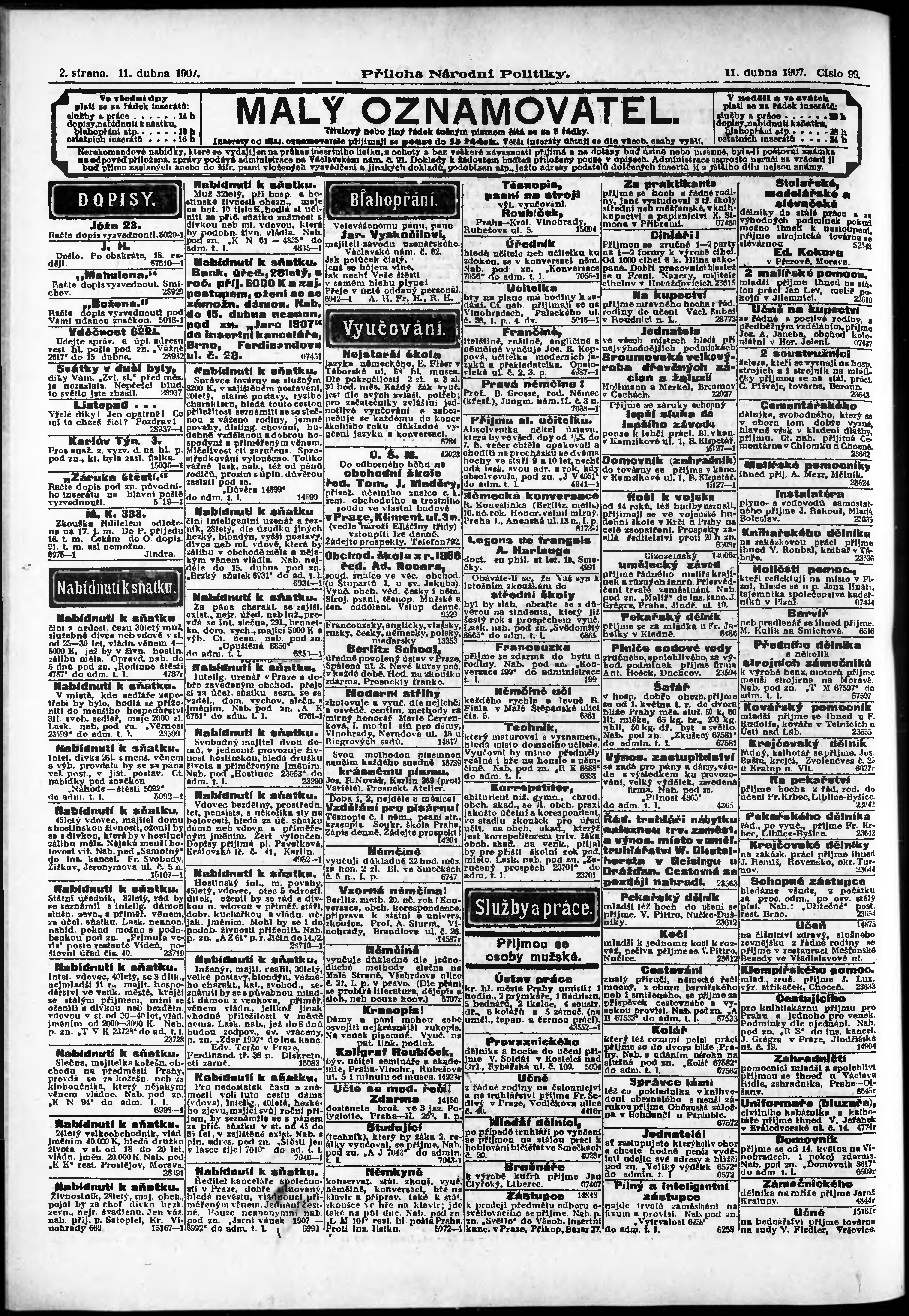 * Datum vydání výtisku: 11.4.1907 Číslo výtisku: 99 Typ výtisku: příloha