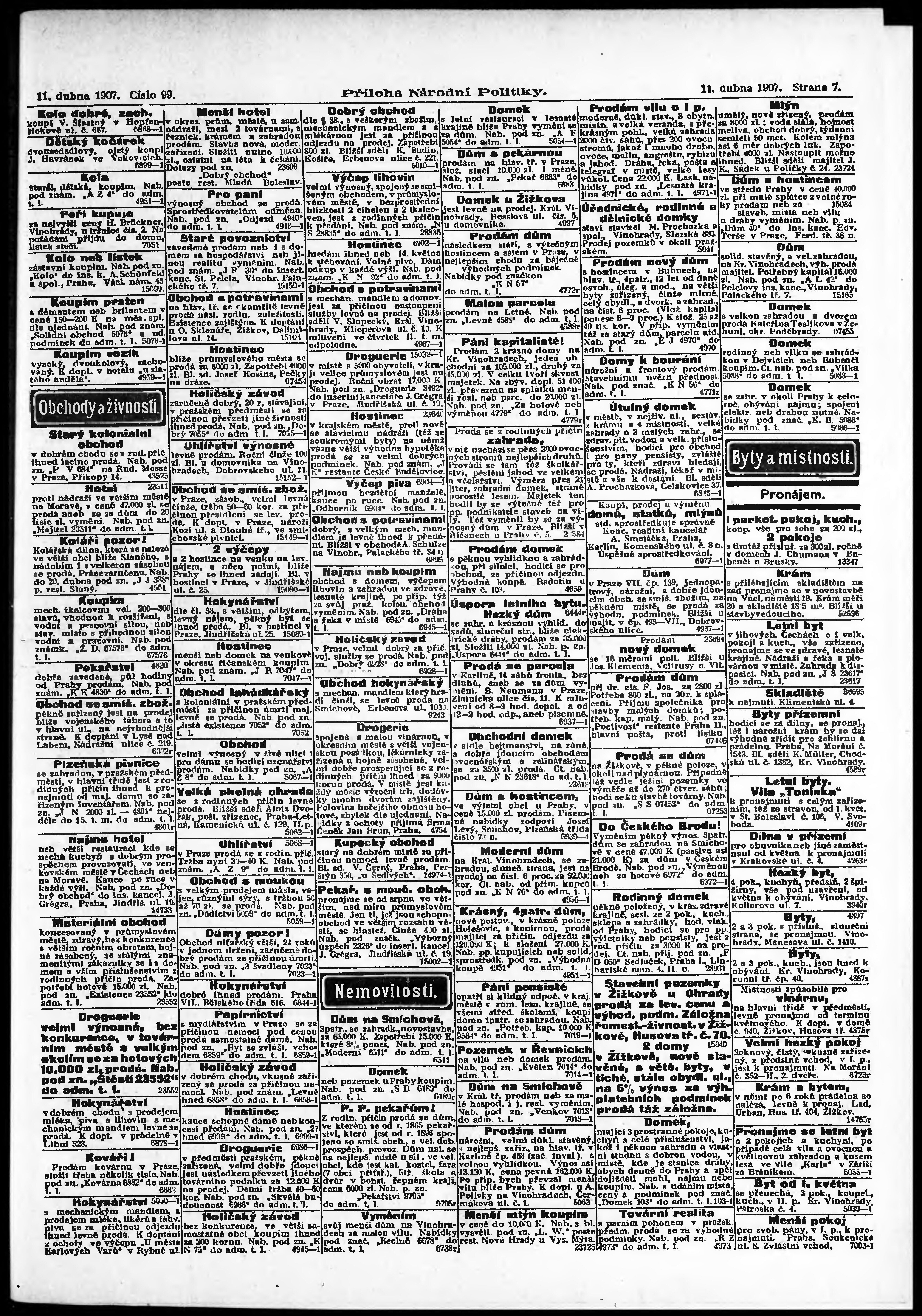 * Datum vydání výtisku: 11.4.1907 Číslo výtisku: 99 Typ výtisku: příloha
