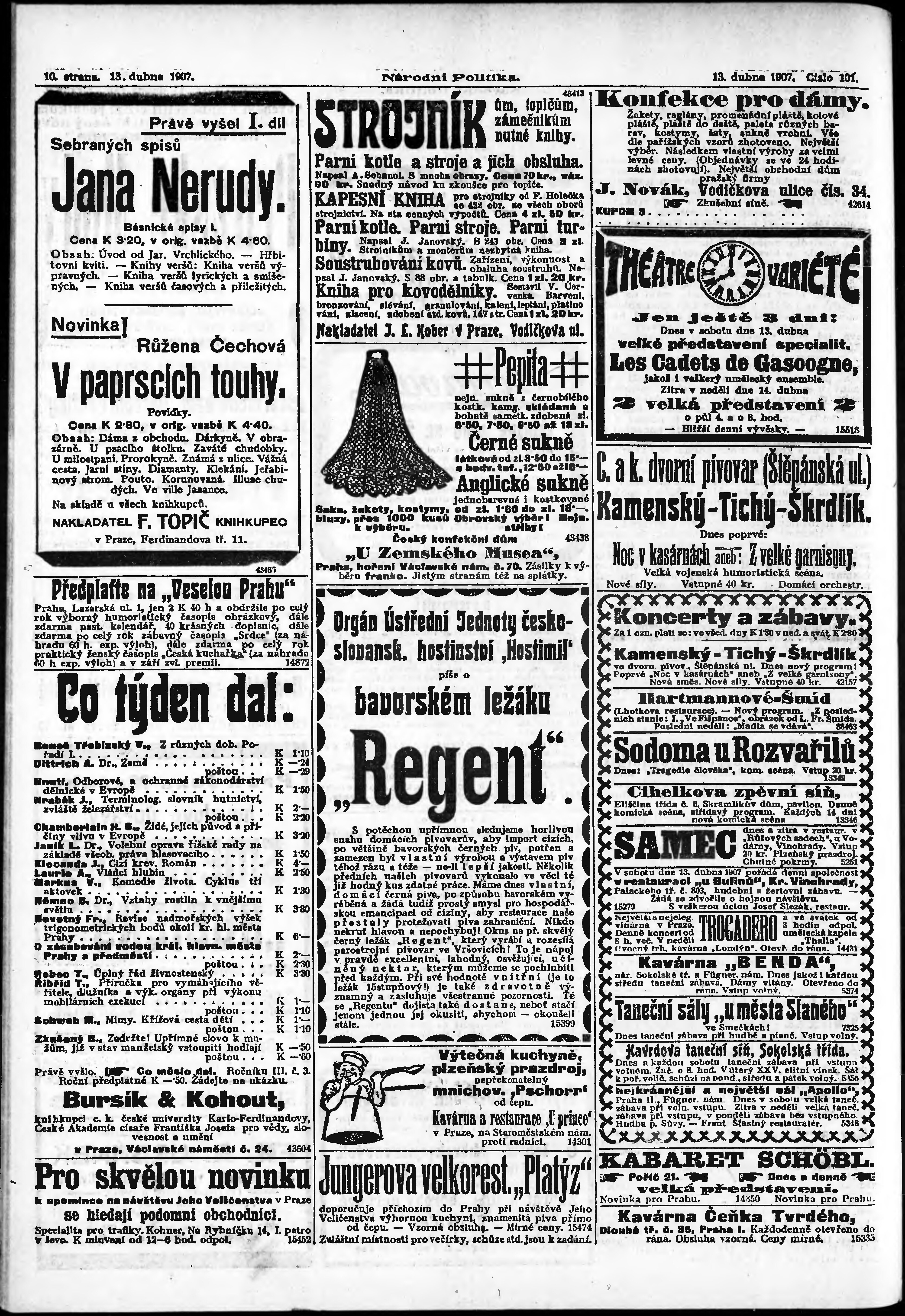 * Datum vydání výtisku: 13.4.1907 Číslo výtisku: 101 Poznámky k výtisku: ranní vydání;