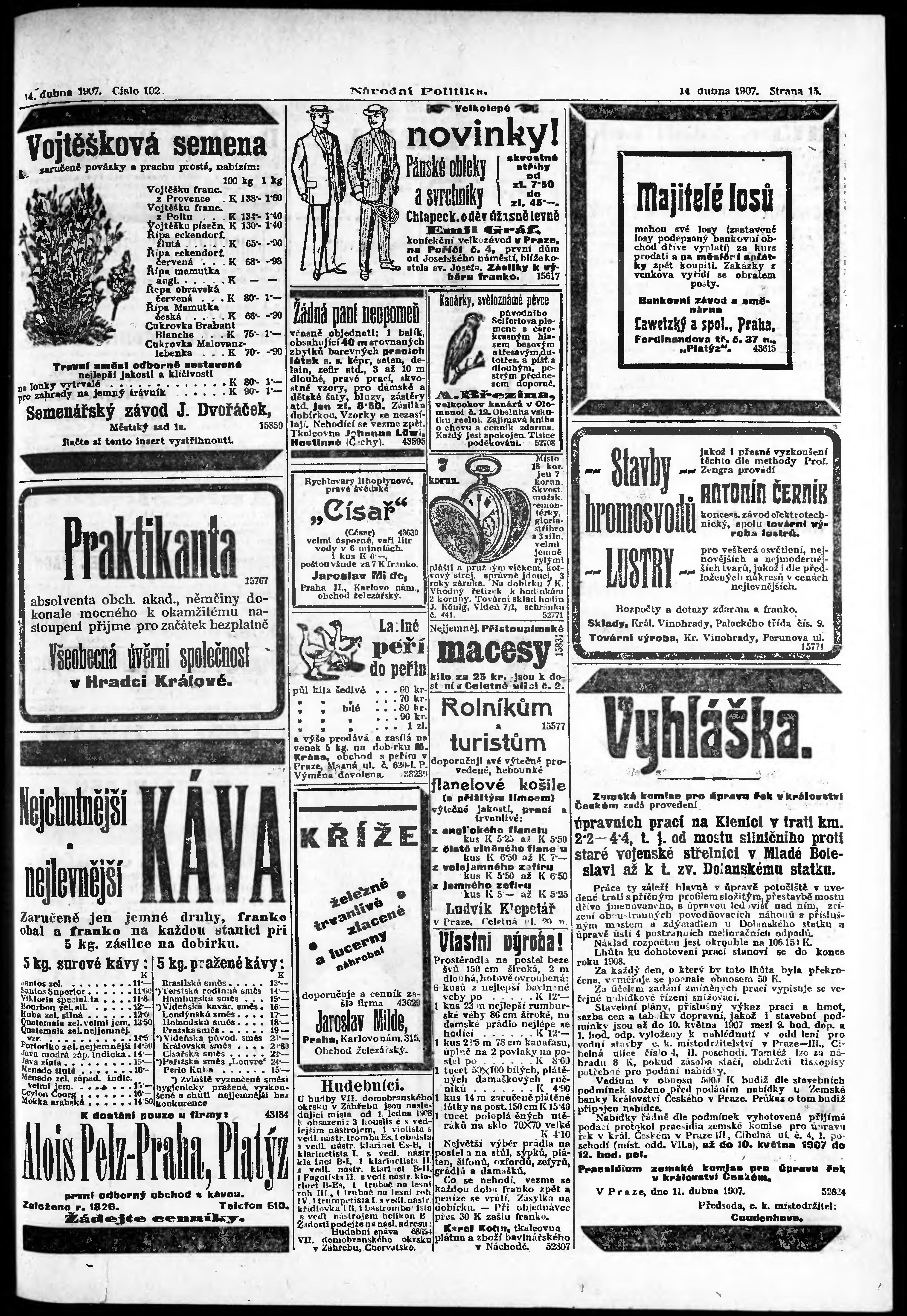 * Datum vydání výtisku: 14.4.1907 Číslo výtisku: 102 Poznámky k výtisku: ranní vydání;