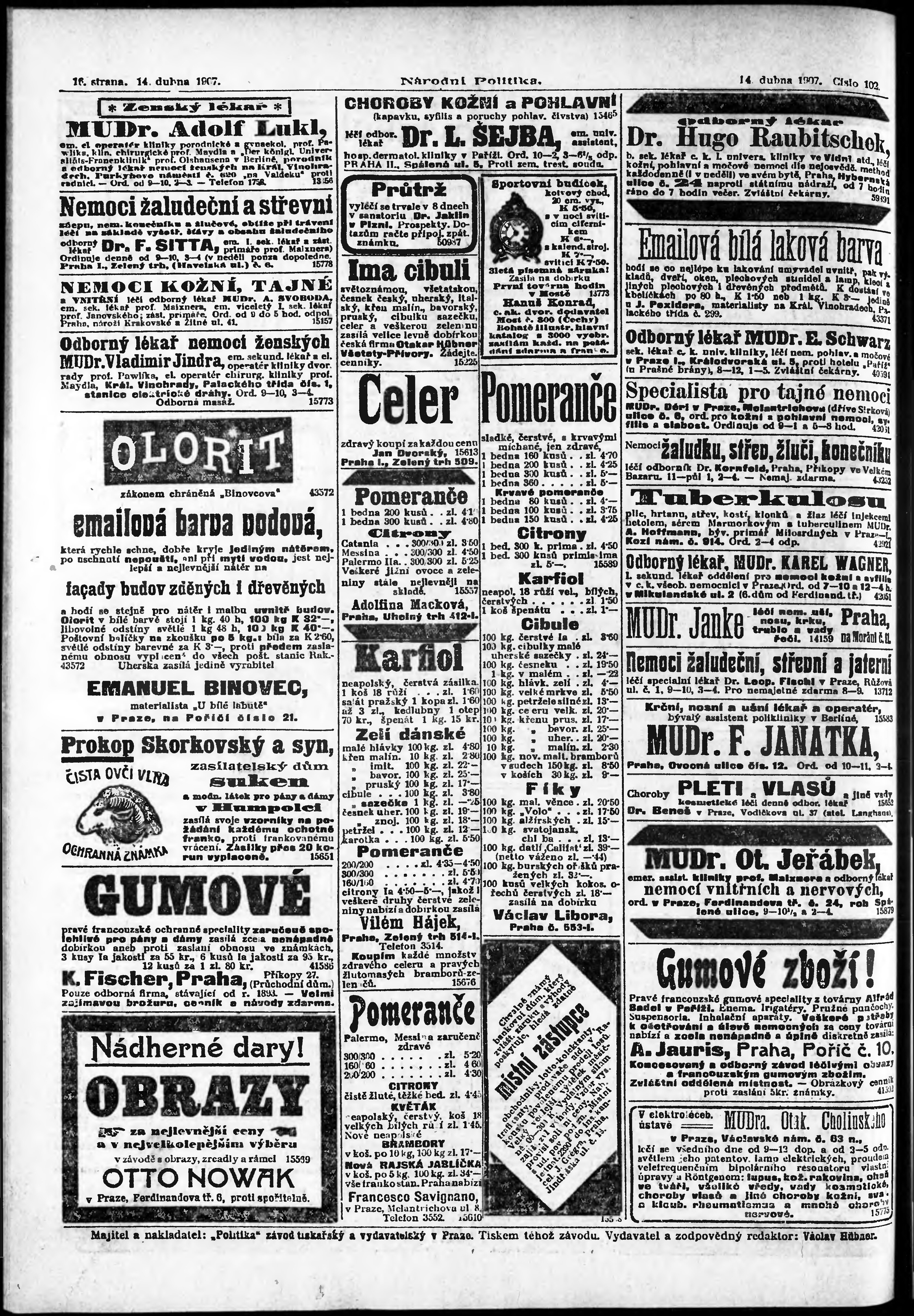 * Datum vydání výtisku: 14.4.1907 Číslo výtisku: 102 Poznámky k výtisku: ranní vydání;